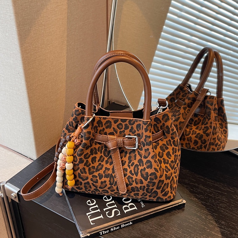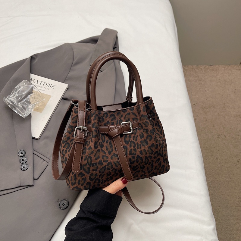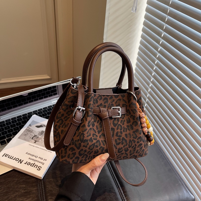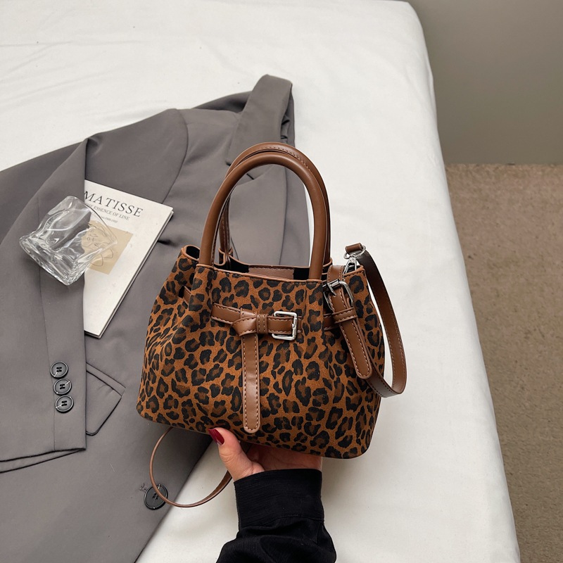 レトロ おしゃれ 高見え ハンドバッグ 小型バッグ レディース 26 レオパード 水桶バッグ おしゃれ ショルダーバッグ 斜め掛け