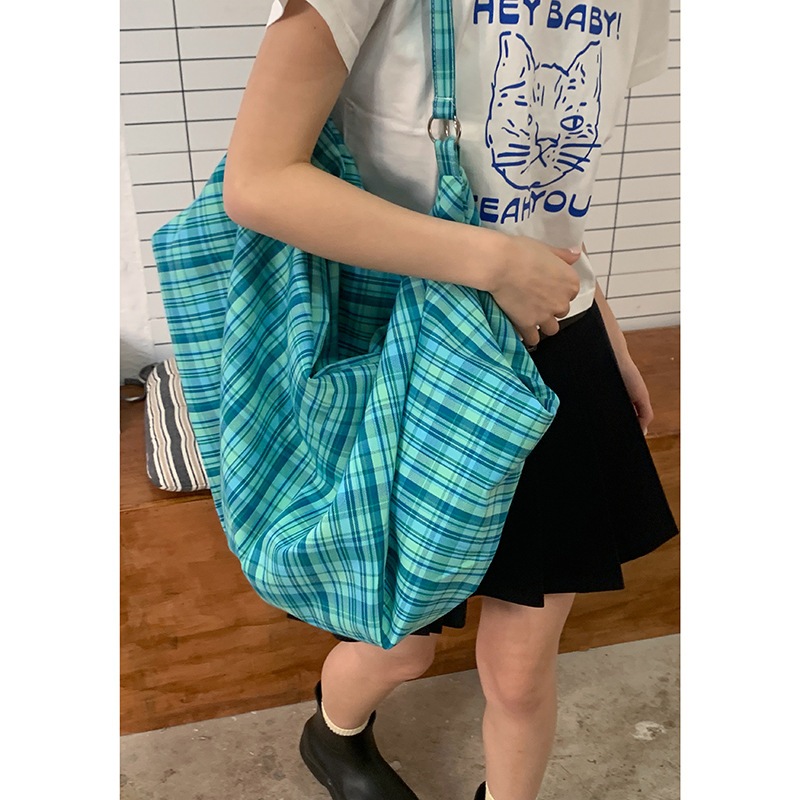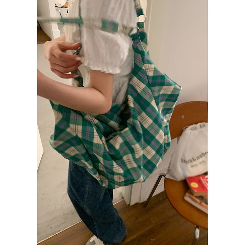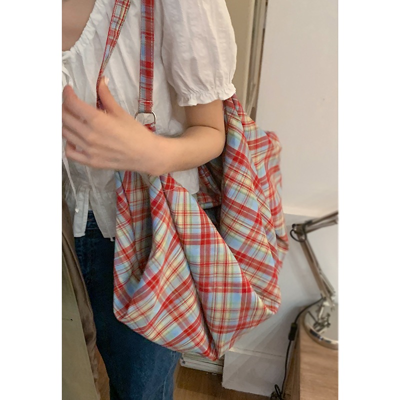 カジュアル リラックス風 大容量 アンダーアームバッグ レディース 26 チェック 帆布バッグ おしゃれ ショルダーバッグ