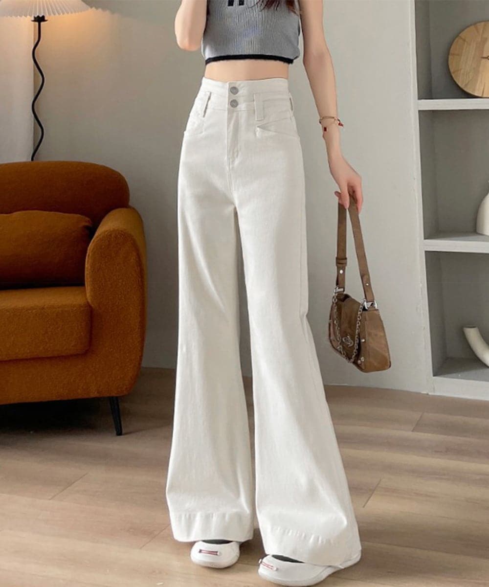 ワイドパンツ フレアデニムパンツ ハイウエスト美脚脚長 デニム ジーンズ