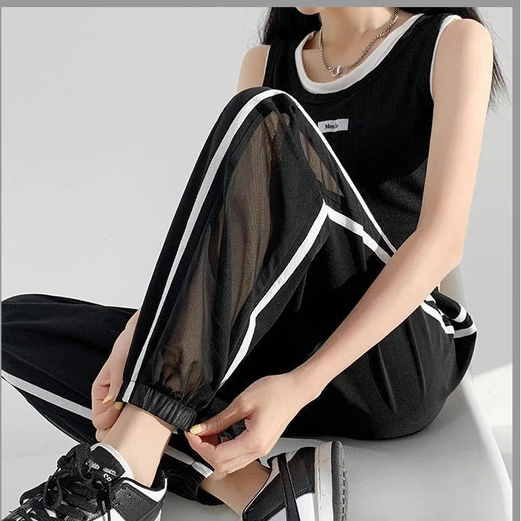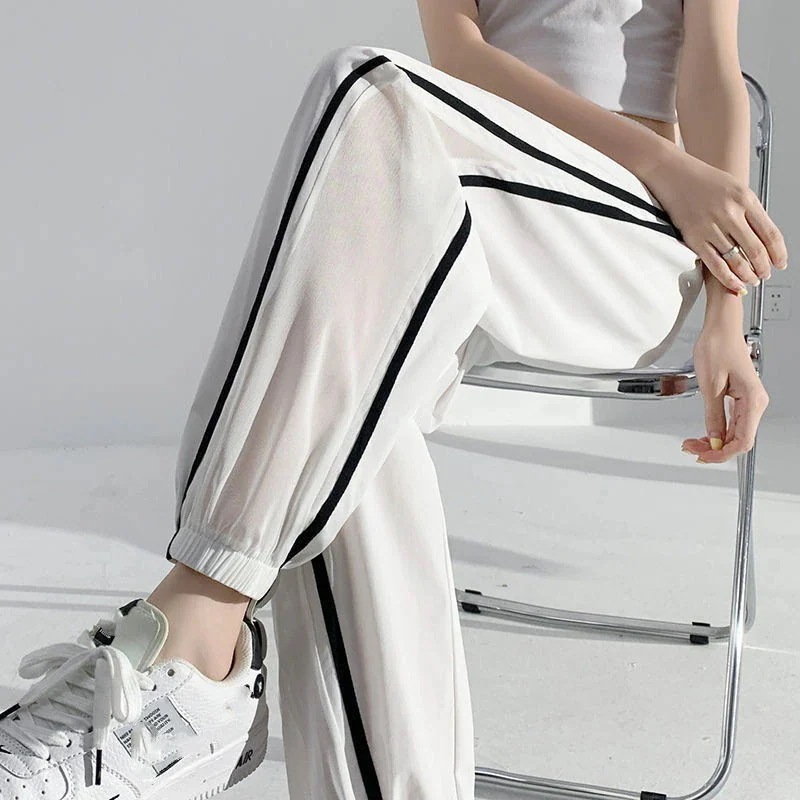 レディース パンツ スラックス スキニーパンツ ワイドパンツ ジョガーパンツ アイスシルク素材 透かしデザイン 薄手 涼しい 美脚 脚長効果 韓国ファッション 人気アイテム