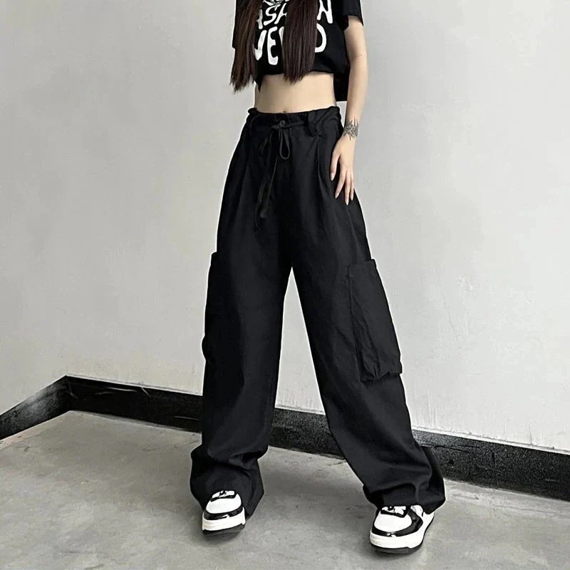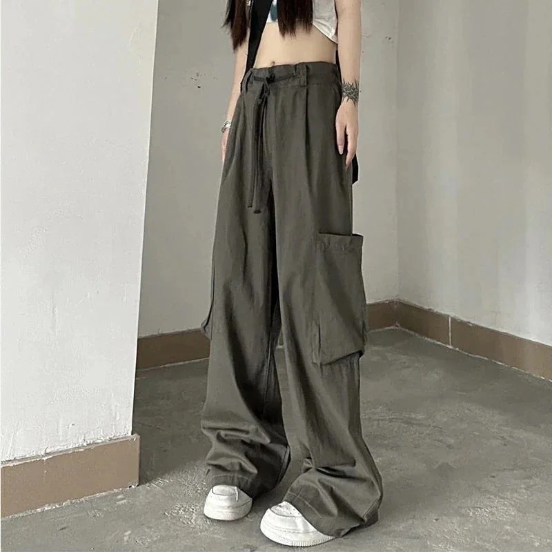 レディース ワイドパンツ スラックス ロングパンツ ハイウエスト ストレートシルエット カーゴデザイン レトロ風 着痩せ効果 カジュアル 長ズボン 人気アイテム