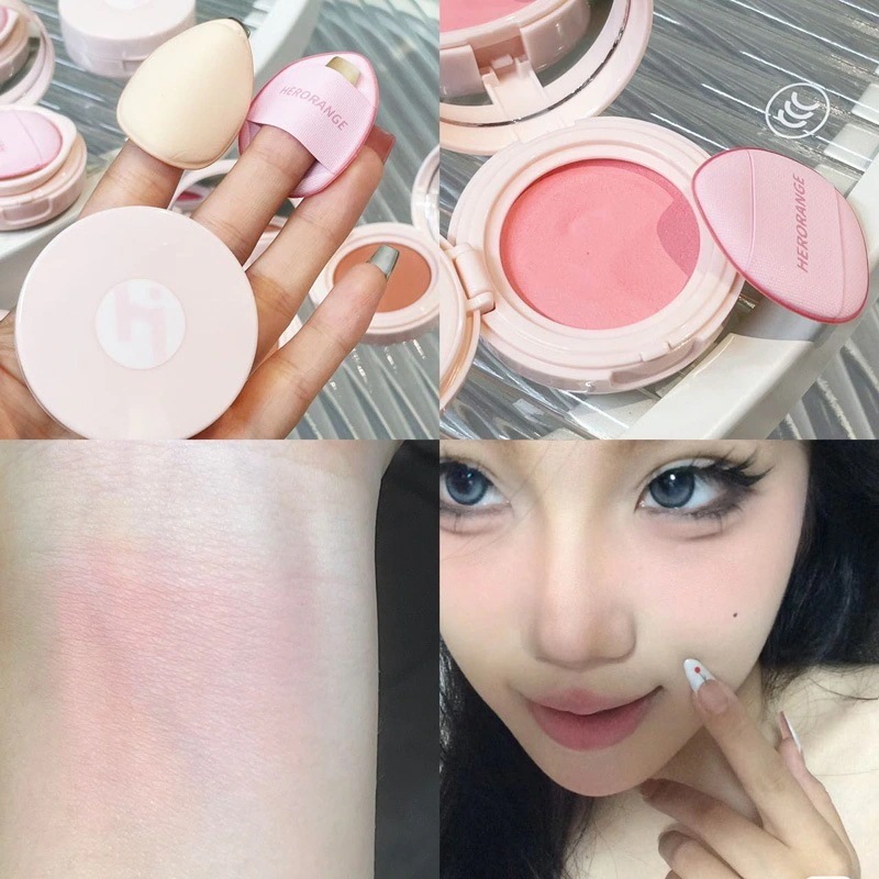 HERORANGEHERORANGE【NEW!】エアマットチーク 膨張色 クッションチーク 新型収縮色 クリームチーク チーク 繊細で肌に優しい 水潤透色 化粧鏡 + 親指パフ フリーメイク エアマット 大人気新...