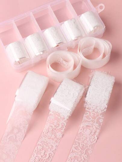 10枚入りボックス ホワイトレースフラワーパターン転写紙(粘着剤なし) ネイルチャーム ネイルジェム ネイル用品 ネイル