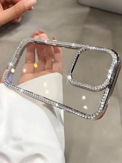 ファッショナブルなシルバーカラーの透明スマホケースは輝くダイヤモンドがちりばめられたフレームが高級感を醸し出します電気メッキ加工の保護フレームを備えiPhone 16e/17 Pro Max/1
