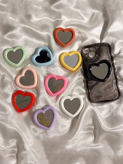 1個のカラフルなハート型伸縮粘着ミラー&スマホスタンド 2-in-1 メイクアップとビデオ鑑賞用 iPhoneAndroidフォンに対応 誕生日家族友人へのギフト 誕生日 プッシュプルスマホグリ