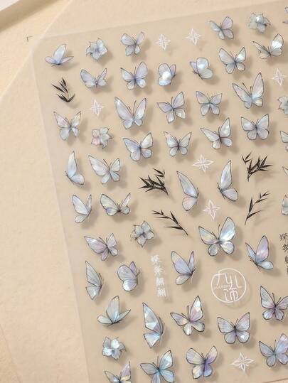 1個 5Dネイルステッカー シェル蝶 ラメ ネイルアートステッカー 高品質春ネイルアートデザインネイルステッカー