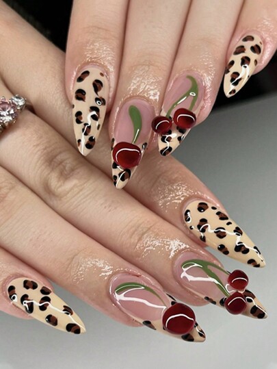 ヌードネイル24個入り フレンチレオパード柄 プレスオンネイル フレンチブラック 偽ネイル 秋ネイル オータムネイル スティレットネイル アート ロング偽ネイル ヌードネイル ネイルサプライ ネイル