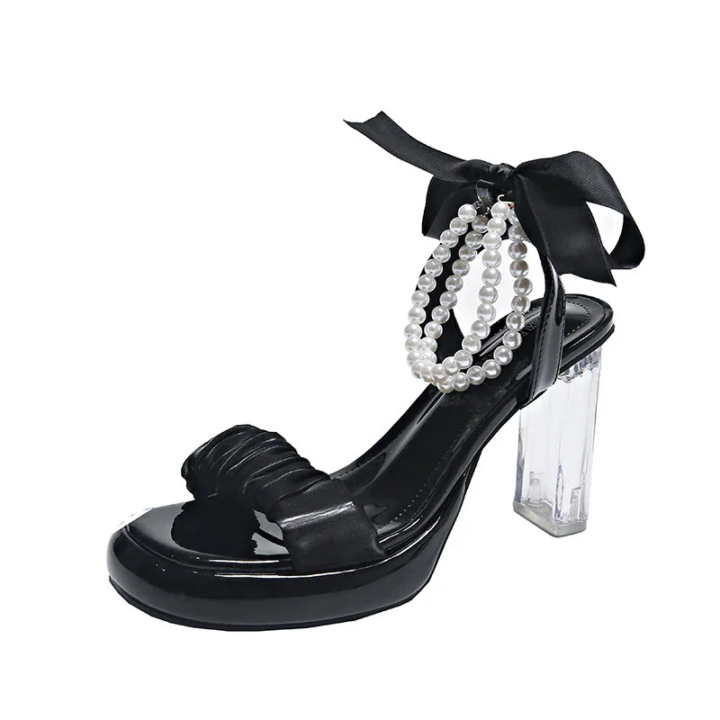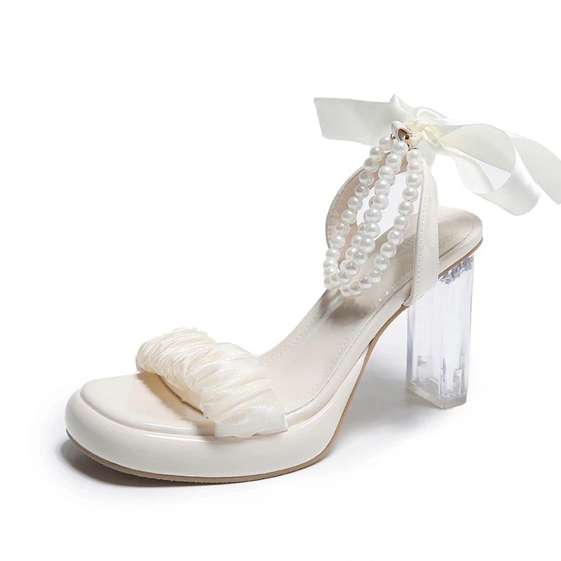 2025新作 サンダル レディース 靴 厚底 ビーチサンダル 夏 厚底サンダル 今っぽ ストラップ サンダル ハイヒール プレゼント レース パール 装飾 ワンストラップ 気質 疲れない