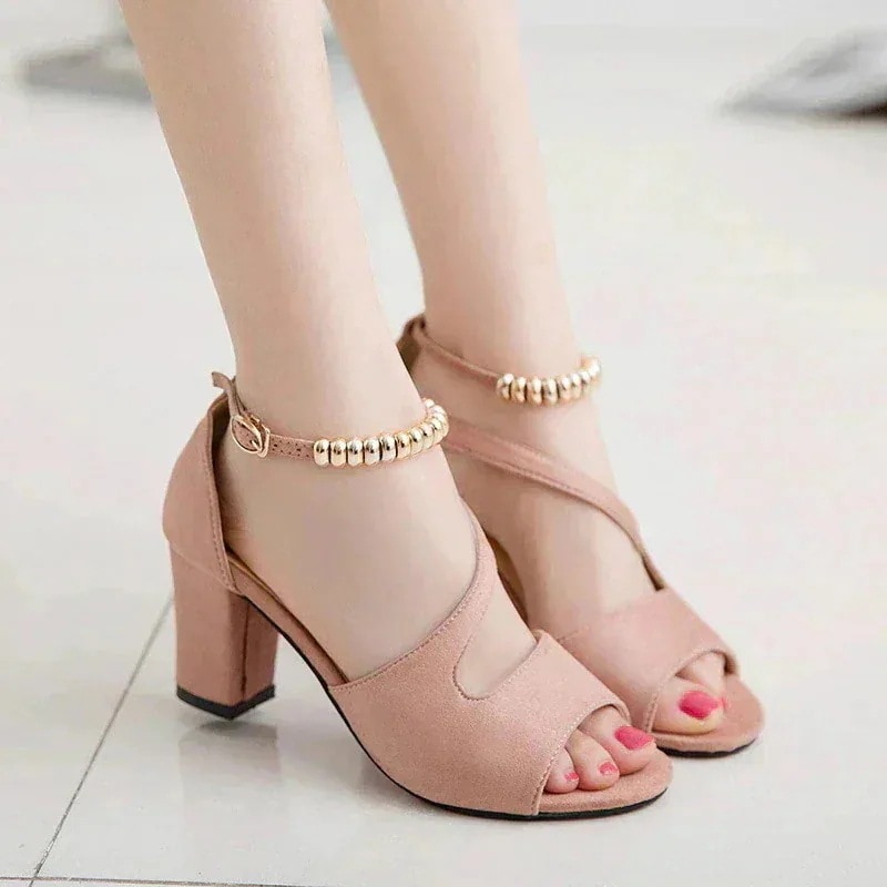 大人気 サンダル レディース 2025夏モデル ボタンで留める パイル 太いかかと ローマ靴 ハイヒール 婦人靴 レディース 韓国ファッション
