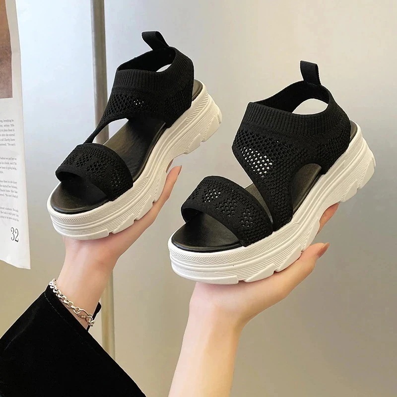 疲れない 2025 夏 サンダル 歩きやすい 厚底 ニットサンダル レディース姿勢 矯正 美脚 韓国ファッション ウェッジソールサンダル