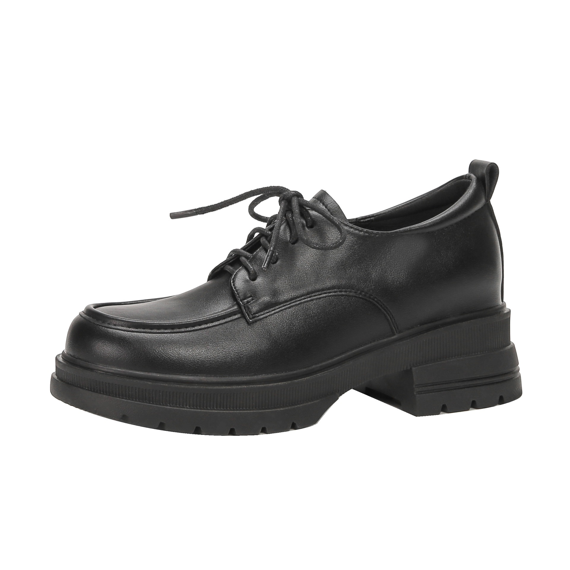 厚底シューズ春秋 人気 スクエア靴気質のフランス式レースアップシューズローファー通勤革靴