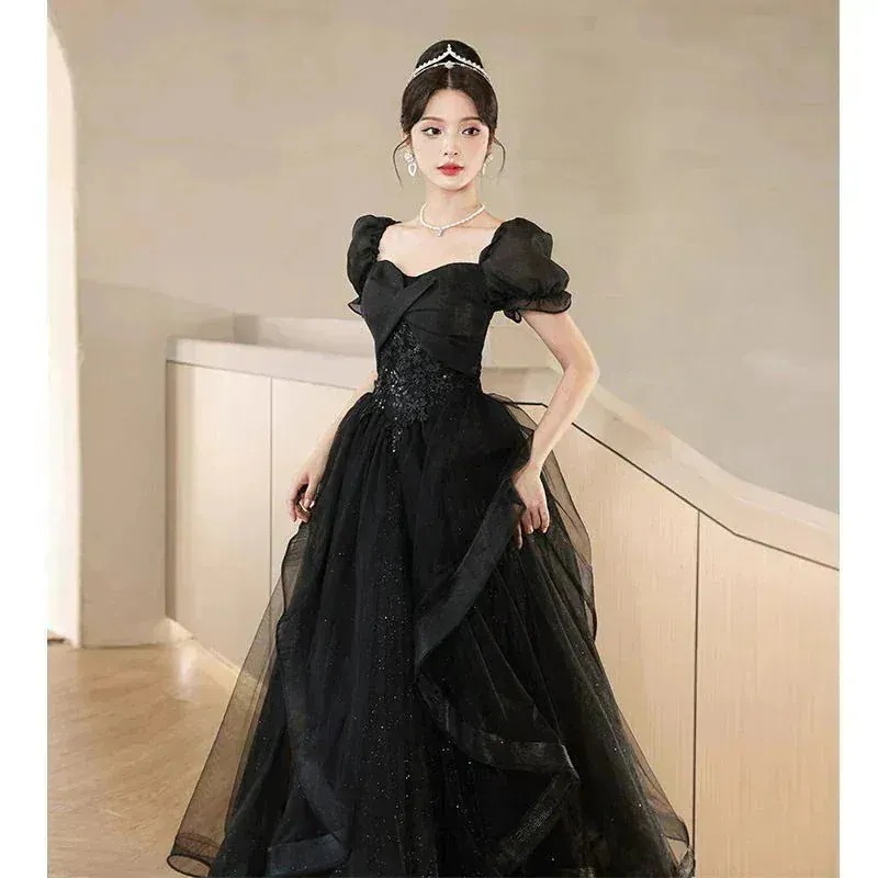 気質 演奏会/ロングドレス韓国ファッション/入学式/卒業式 礼服 黒のイブニングドレスのスカート 新しい宴会気質シニアセンスロングハイエンド冬のドレス