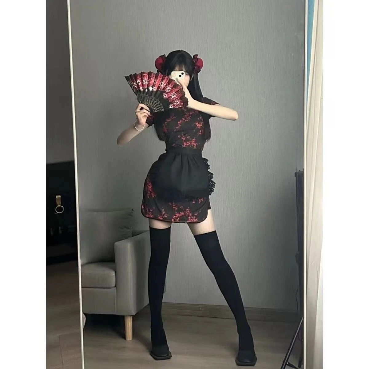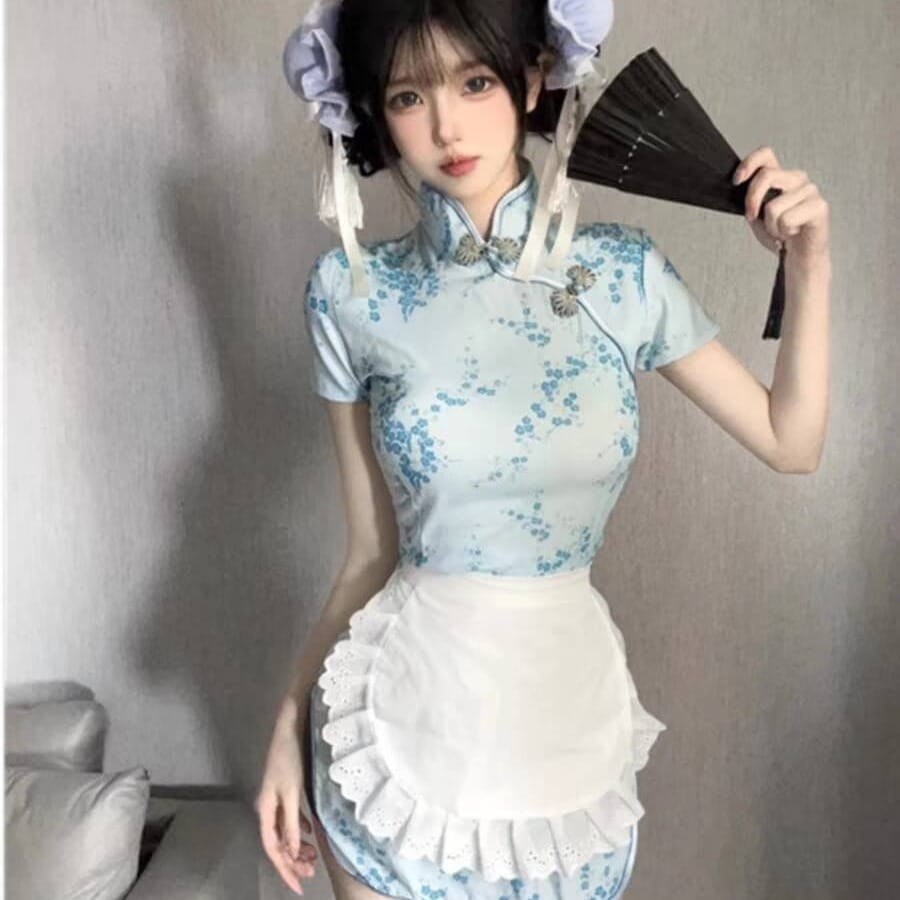 ハロウィン 人気 着痩せ チャイナドレス セクシー 中国風 メイド服 制服 3点セット