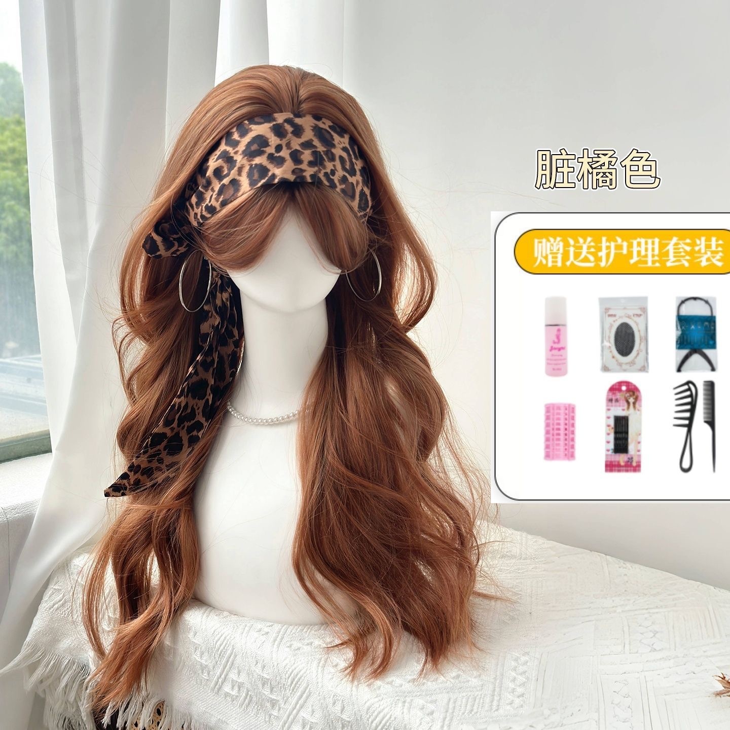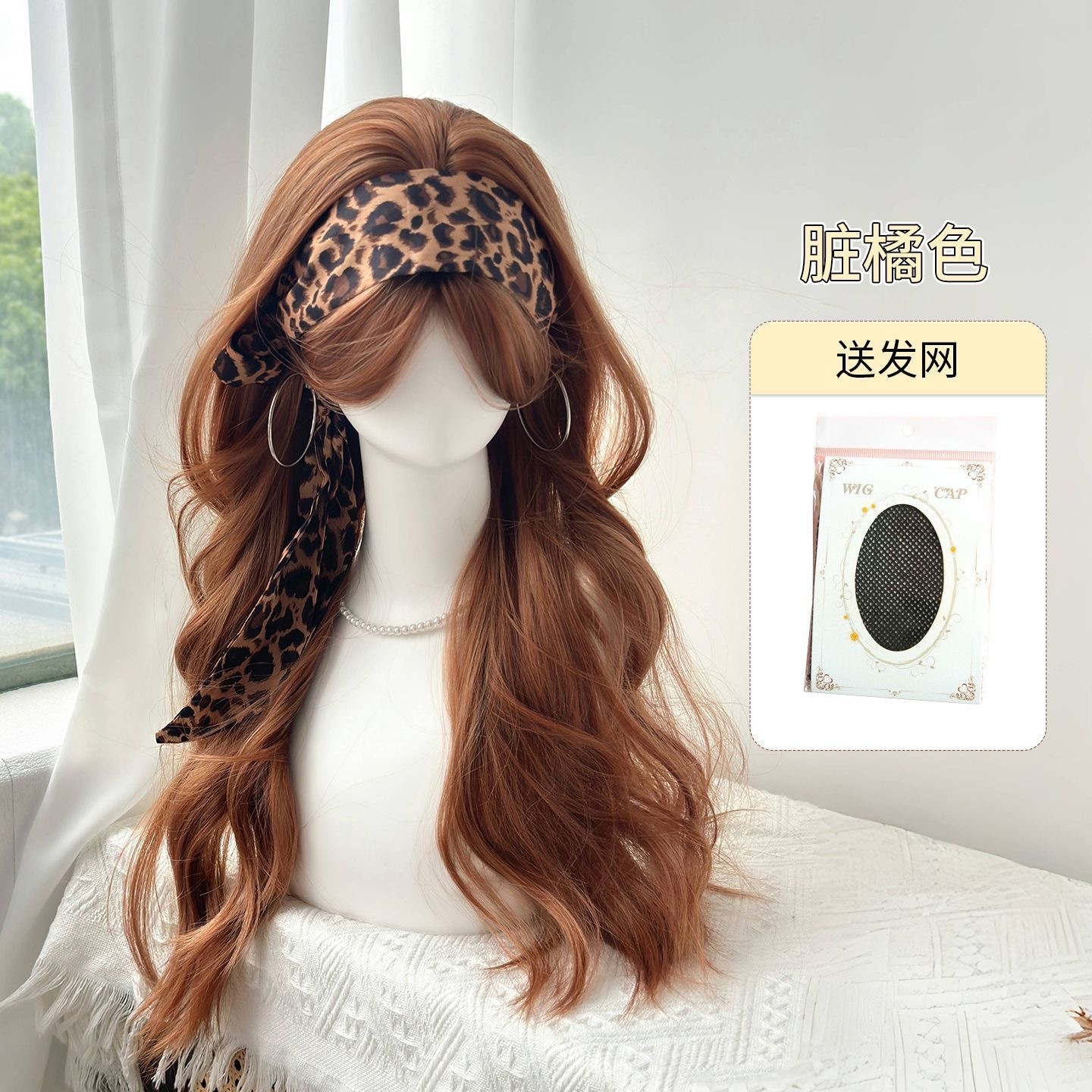 ダーティ オレンジ 色 ウィッグ 女性 フルウィッグ 前髪 大 波 ロング ウェーブ y2k 文化 ロリータ ウィッグ