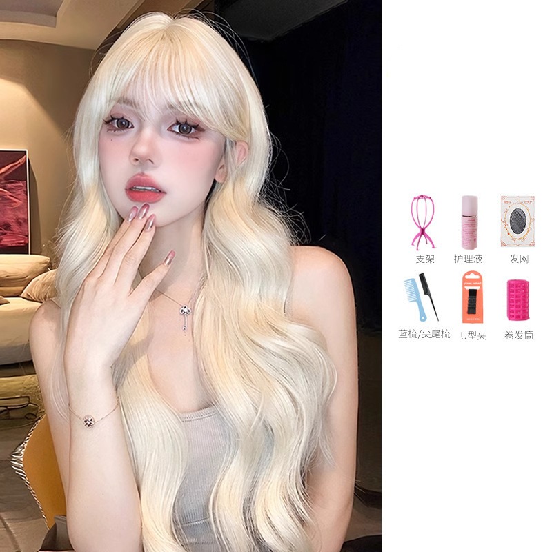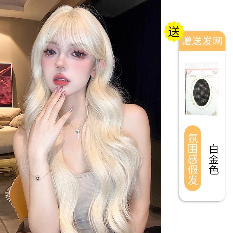 ホワイト ゴールド ウィッグ 女性 ロング ヘア ロング ウェーブ おしゃれ 上品 センターパート 卵 卵 巻き 自然 リアル フルウィッグ