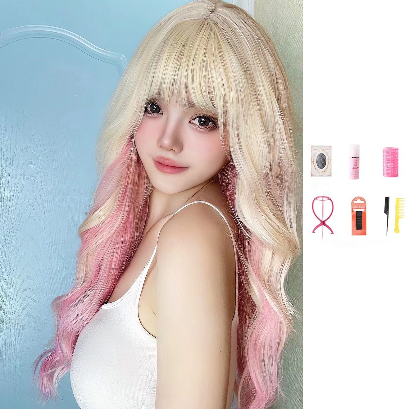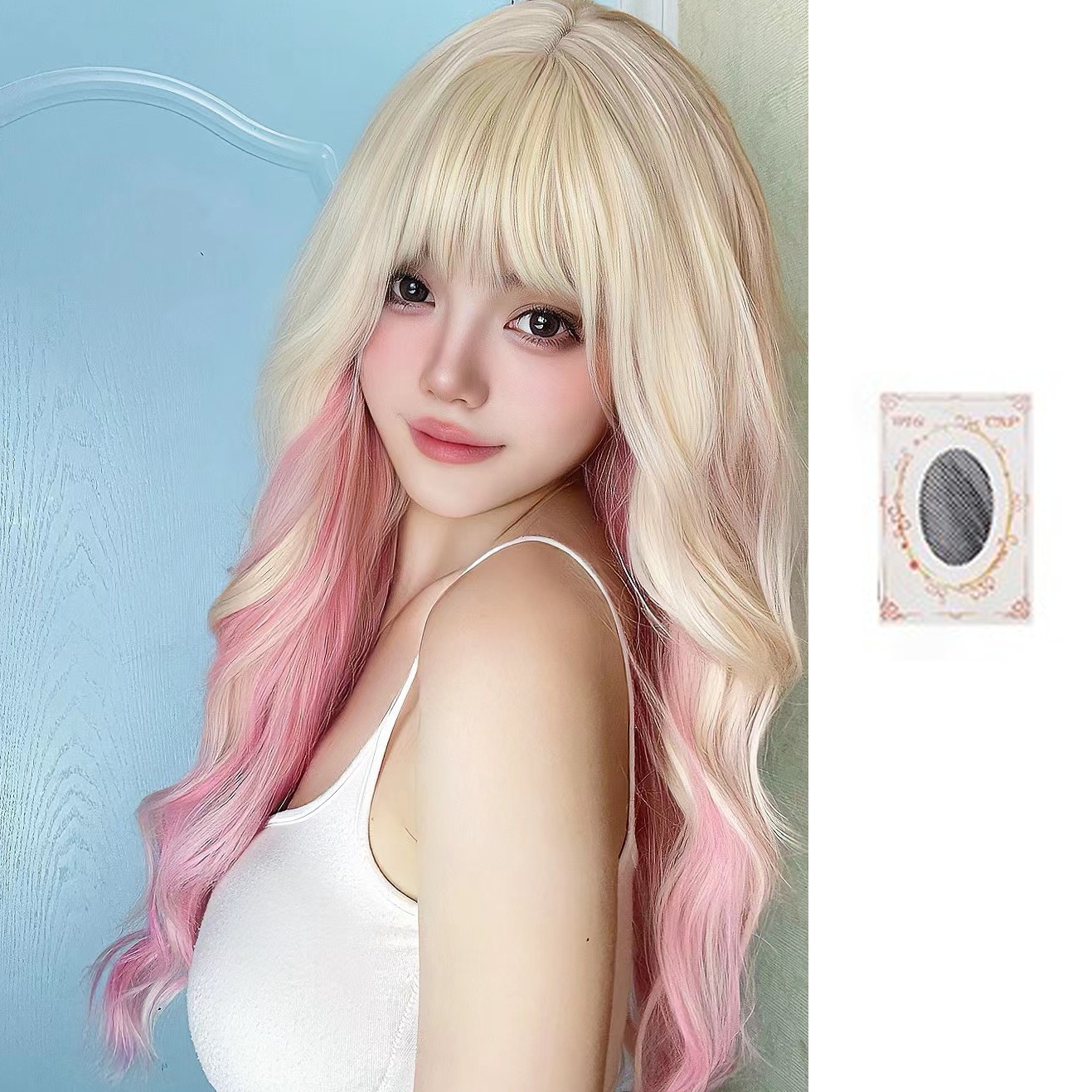 ウィッグ 日 桜 ピンク ゴールド グラデーション ピンク ロング ウェーブ クール lo カラフル 大 波 aa リラックス風