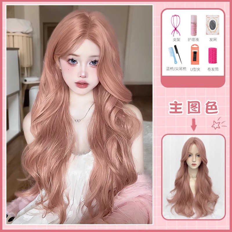 ピンク ウィッグ 女性 ロング ヘア ロリータ センターパート 前髪 ロング ウェーブ ウィッグ フルウィッグ 甘い風