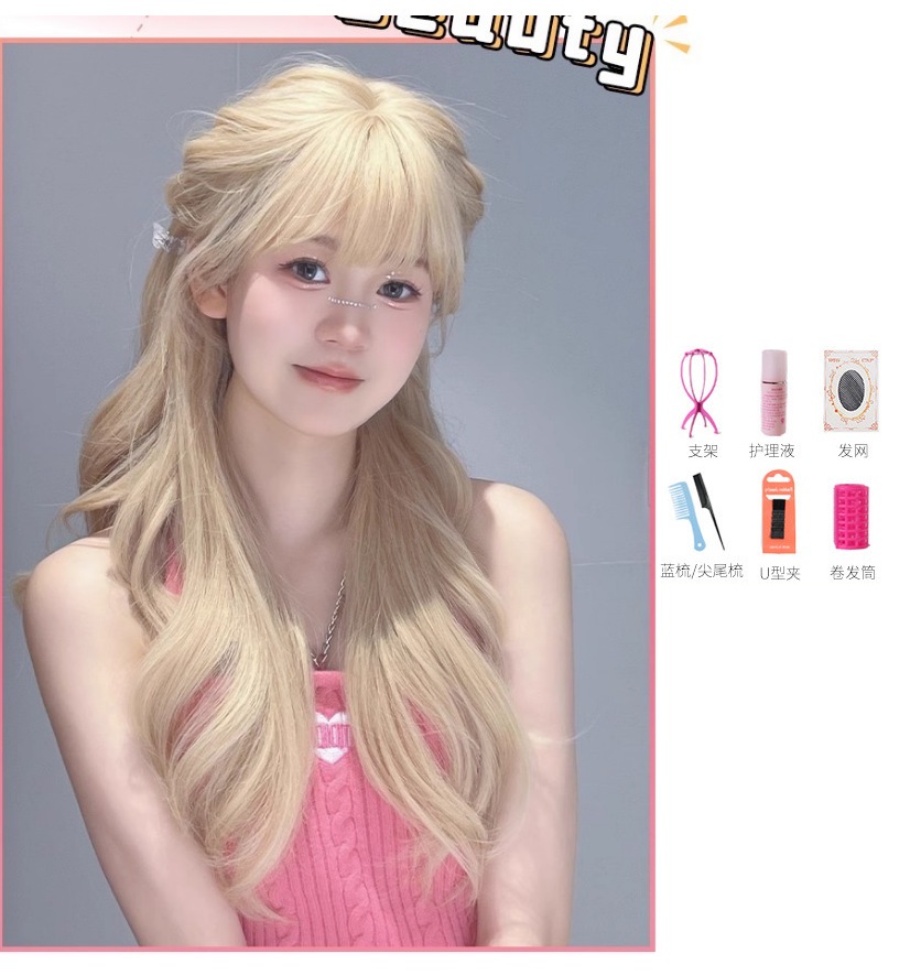 ウィッグ 女性 ロング ヘア ライトカラー ロング ウェーブ フルウィッグ リアル 人 髪 ホワイト ゴールド 色白見え 大 波 全体 ウィッグ