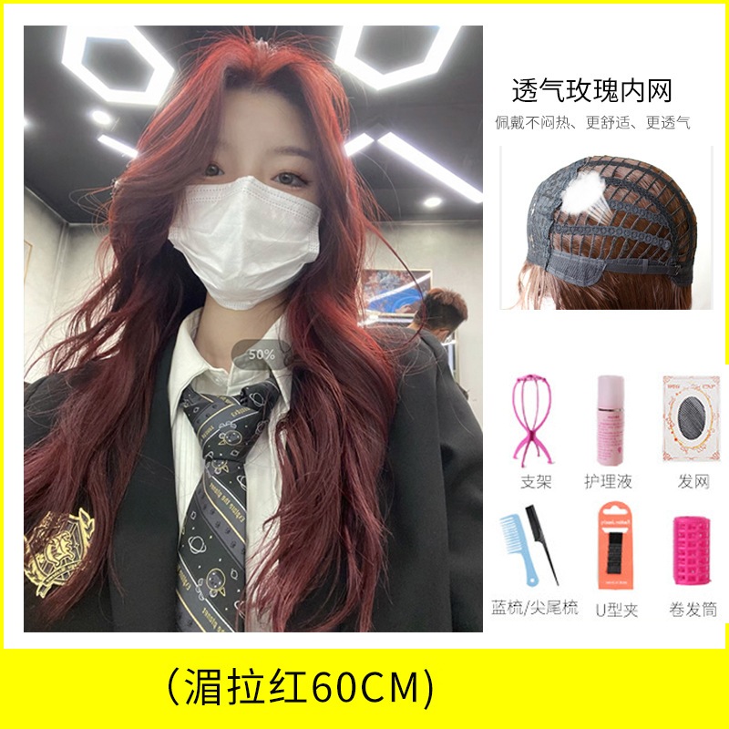 ウィッグ 女性 ロング ヘア レッド センターパート 前髪 大 波 ロング ウェーブ 自然 仿 全 真人 髪 フルウィッグ