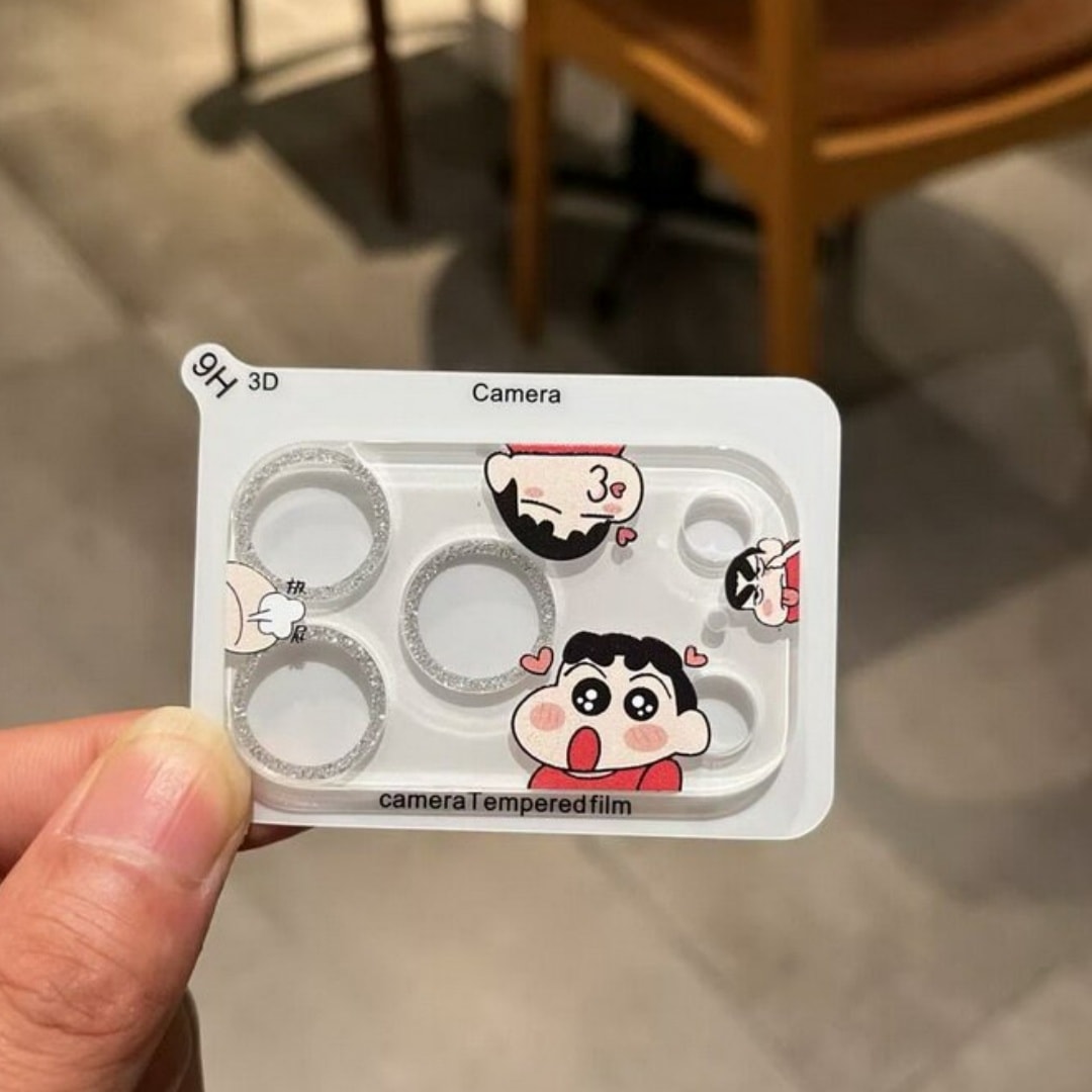 iPhone17カメラレンズ 保護フィルム iphone16 15PRO 14pro 13 12 11 漫画カメラレンズカバー 9H 強化ガラス 透明 超かわい クレヨンしんちゃん キティ