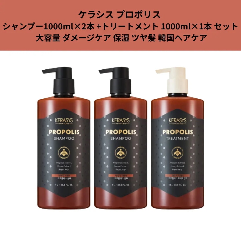 ケラシス[大容量]プロポリス シャンプー1000ml×2本+トリートメント1000ml×1本 セット ダメージケア 保湿 ツヤ髪 韓国ヘアケア/人気シャンプー 韓国/韓国ヘアケア大容量セット