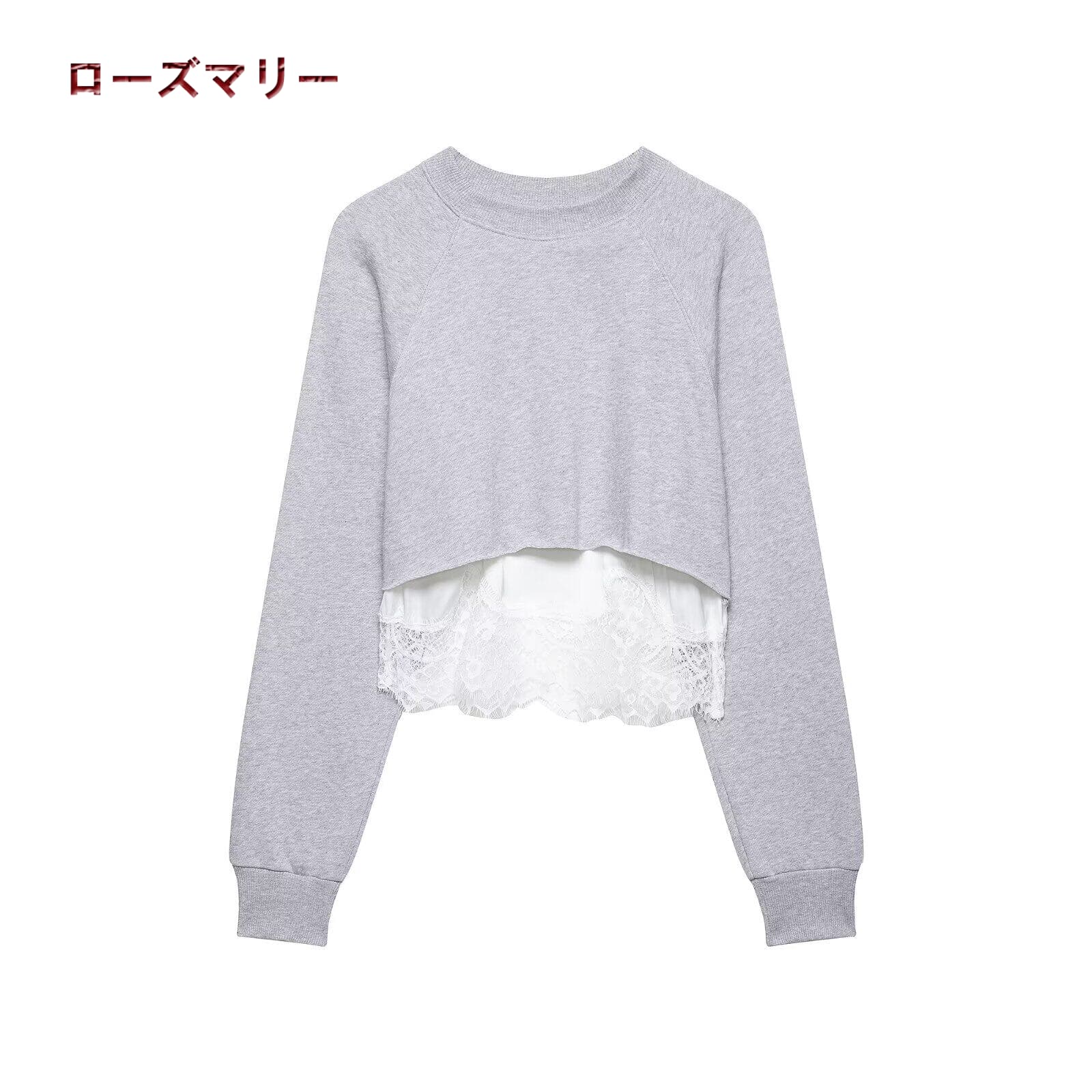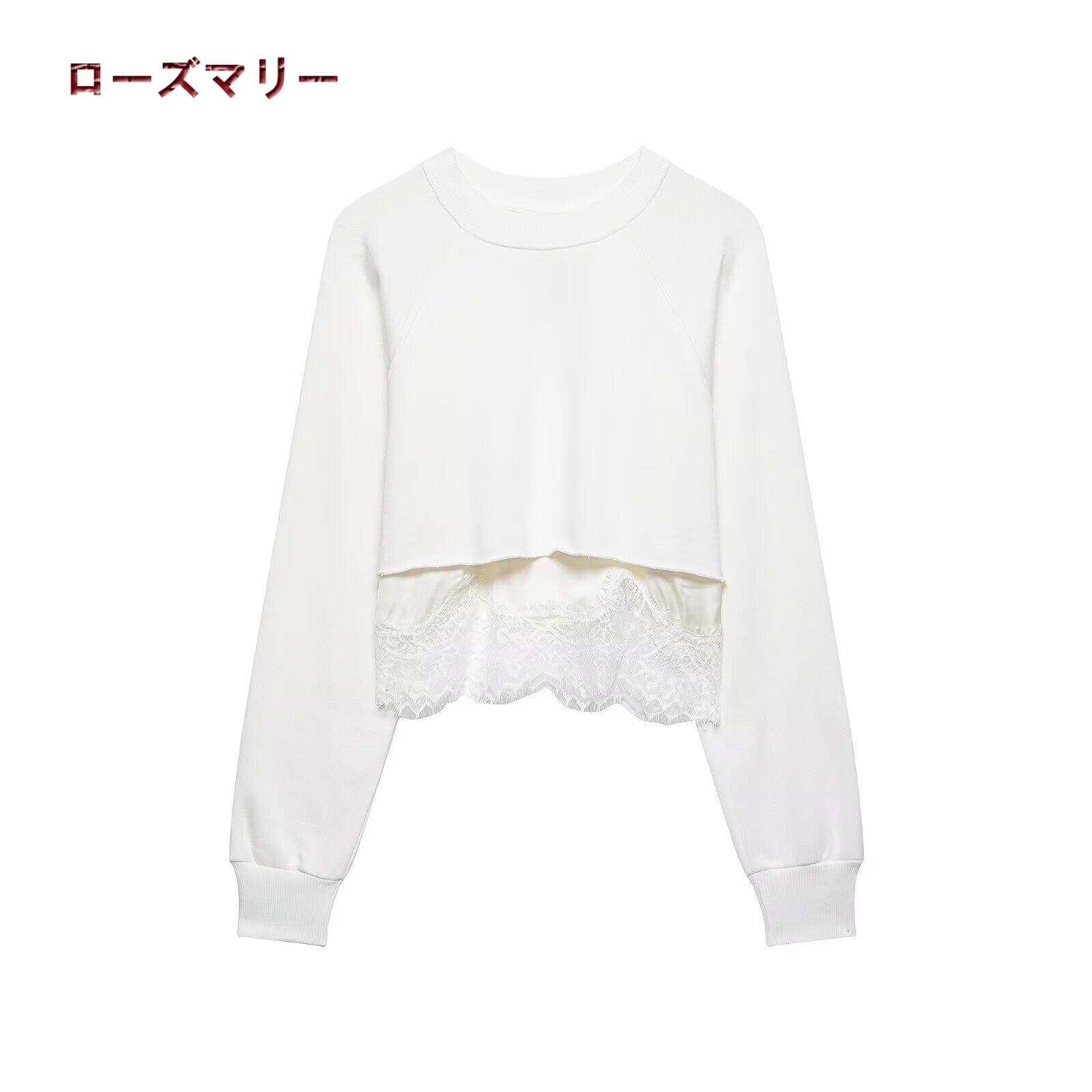 ローズマリーソワール欧米風2026.03.29 春夏新作 ファッションレースのステッチ入りショートスウェット ルーズトップス 2603052