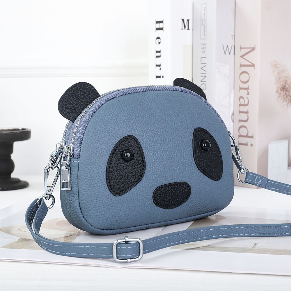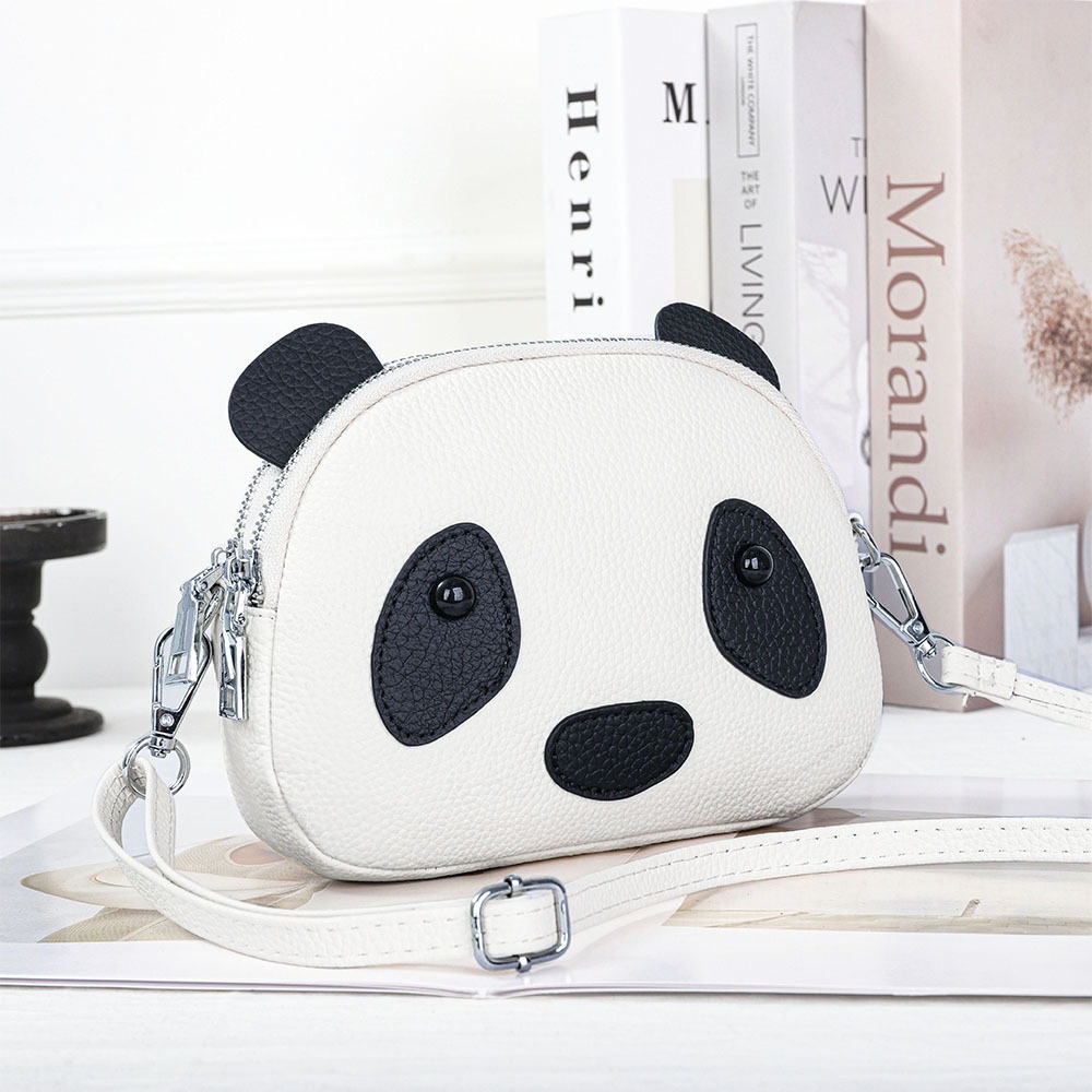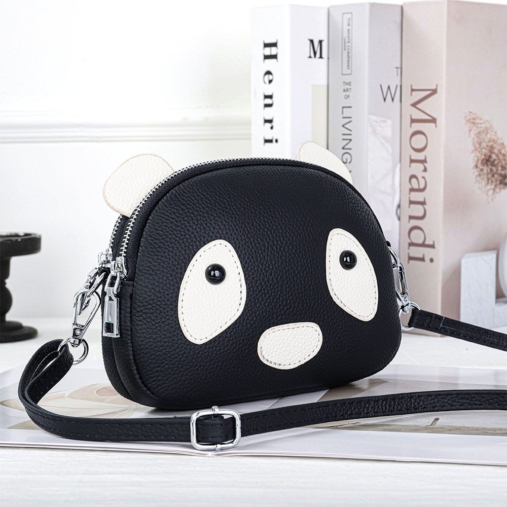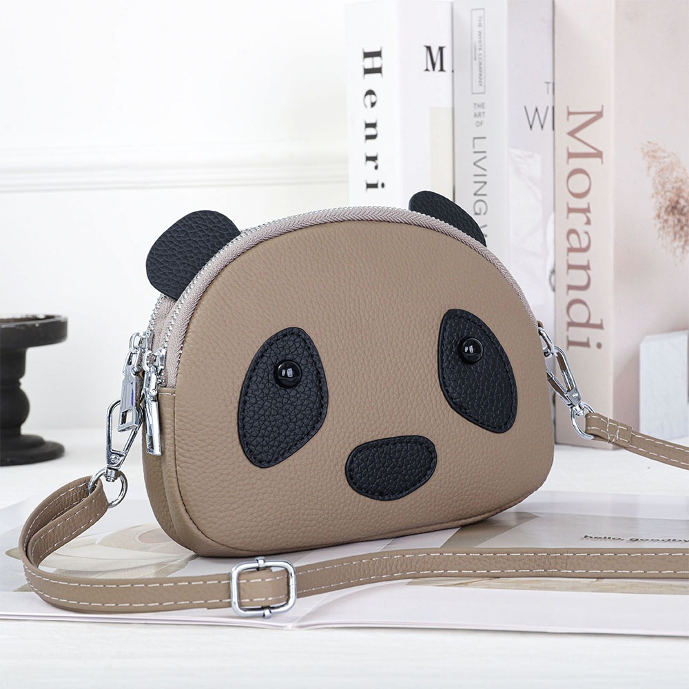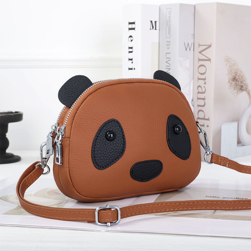 本牛革 パンダモチーフ 斜めがけバッグ 新作 個性的 レディースショルダーバッグ 本革バッグ