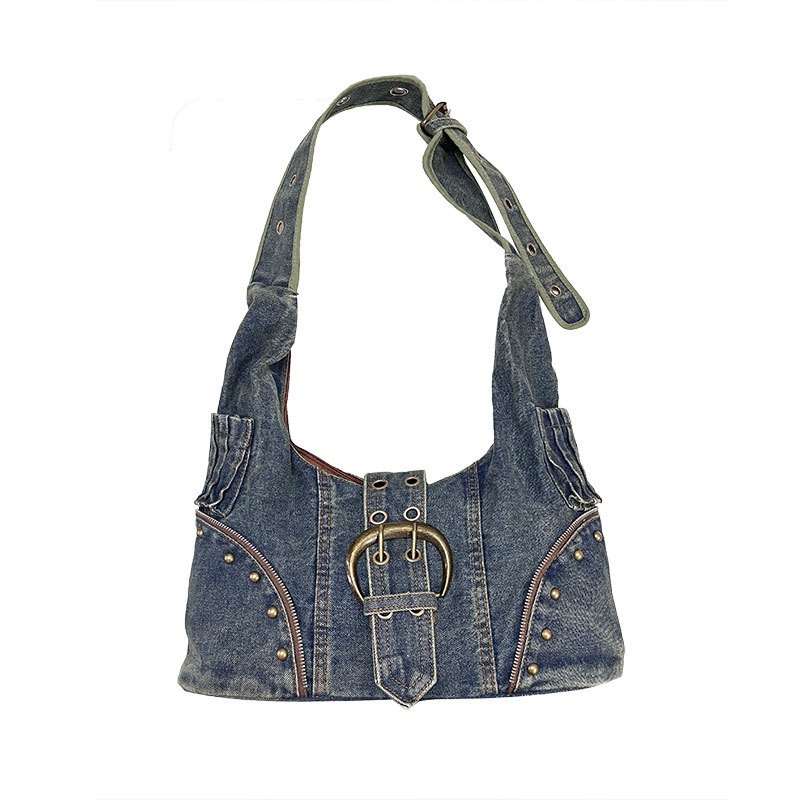 美式复古牛仔包街头潮流斜挎包学生通勤大容量高级设计感托特包女