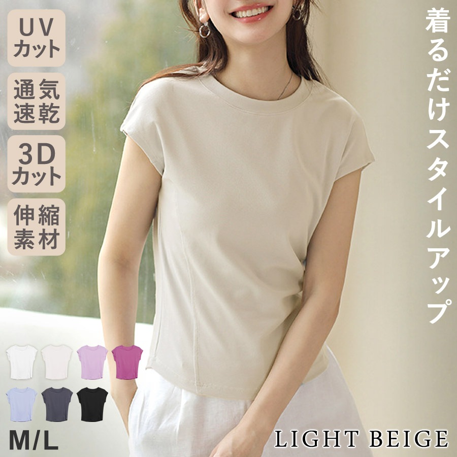 [短納期]Tシャツ レディース UVカット 着痩せ UV 3D スタイルアップ フレンチスリーブ 半袖 通気性 速乾 秋 冬 無地 ストレッチ 綿 コットン 伸縮性 白 黒 トップス
