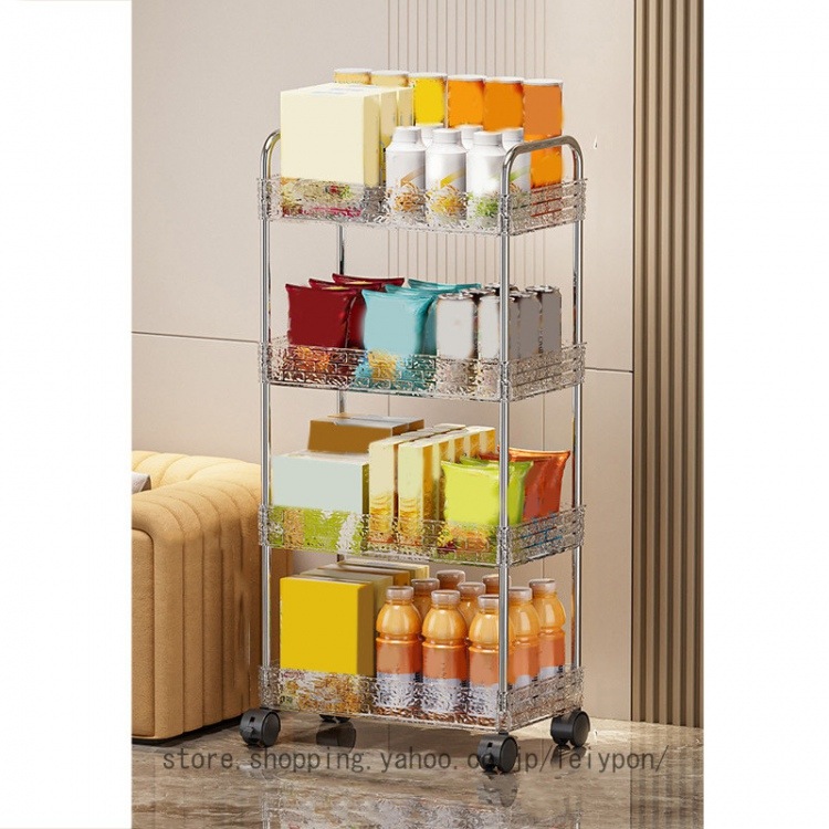 おしゃれ かわいい キャスター付き キッチンワゴン 4段 透明 化粧品収納 ベッド横 小物収納 片付け リビング 子供部屋 収納カート コスメ収納ケース