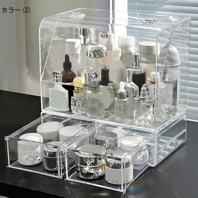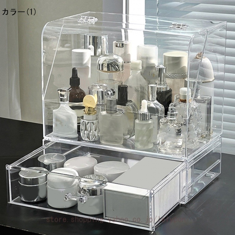化粧品収納ボックス メイクボックス コスメ収納 卓上収納 収納ボックス 化粧箱 透明 蓋 引き出し付き 化粧品 小物入れ 文房具収納 大容量 分類収納 防塵 防水