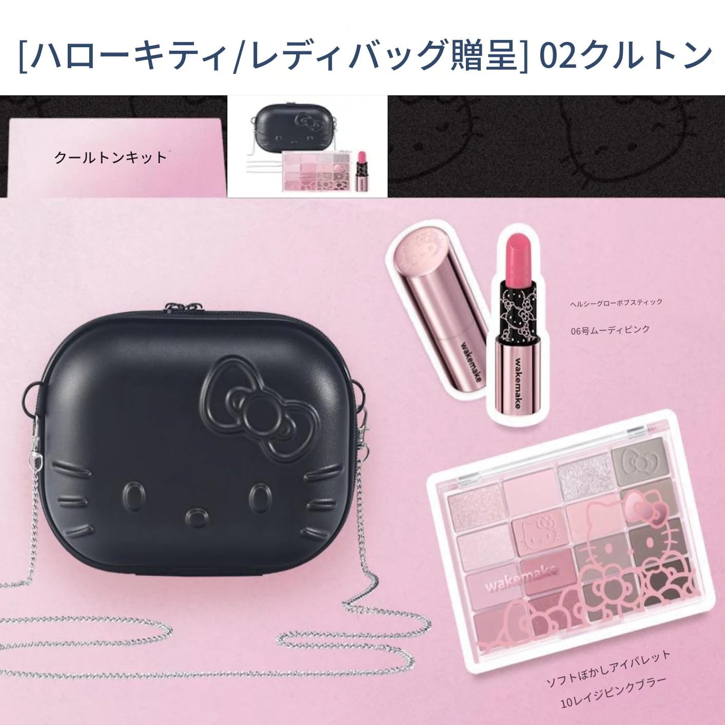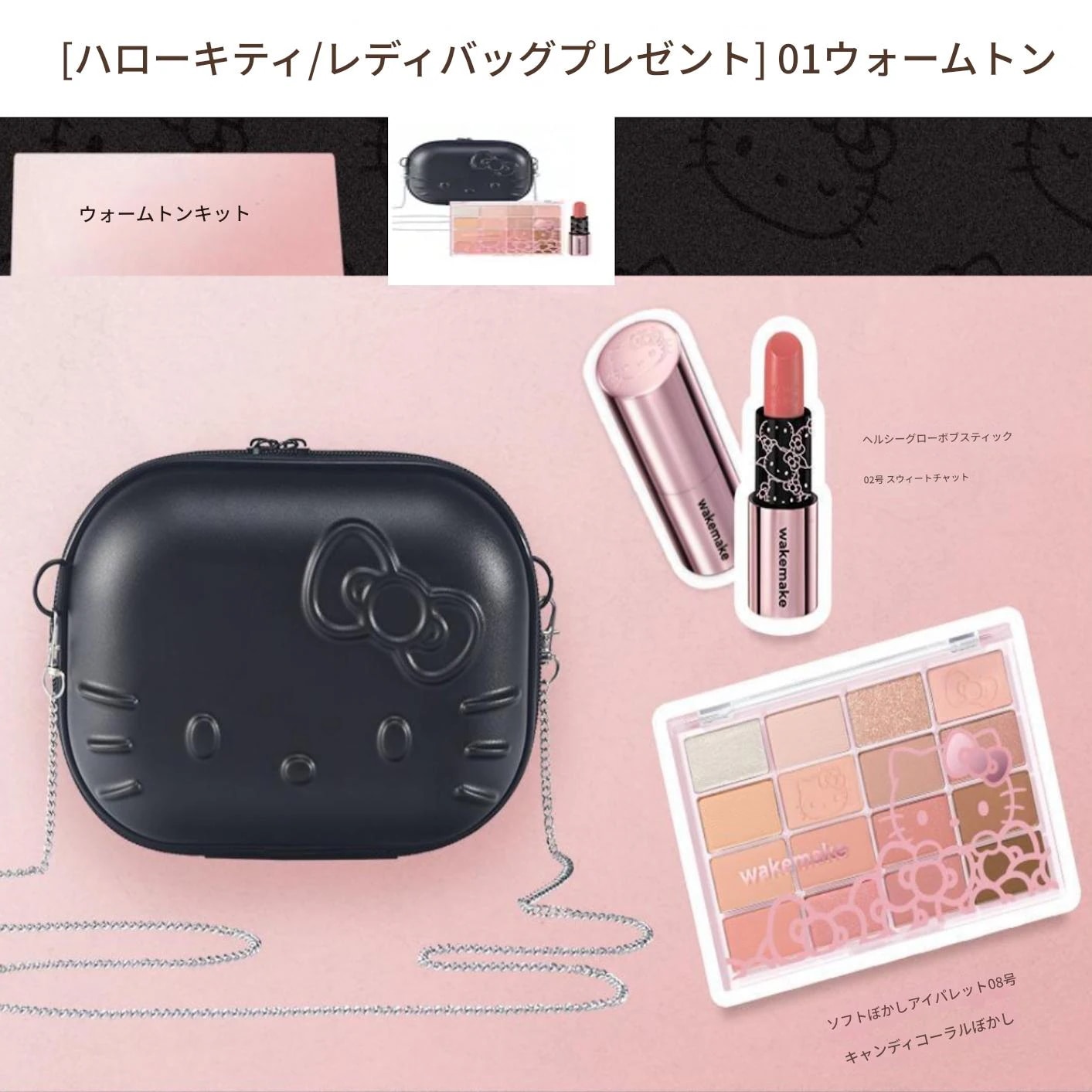 ウェイクメイク【ハローキティ ブラックエディション/レディバッグ贈呈】リップ&アイキット(アイパレット+バームスティック)2色展開 01 イエベ 02 ブルベ ウォームトーン クールトーン