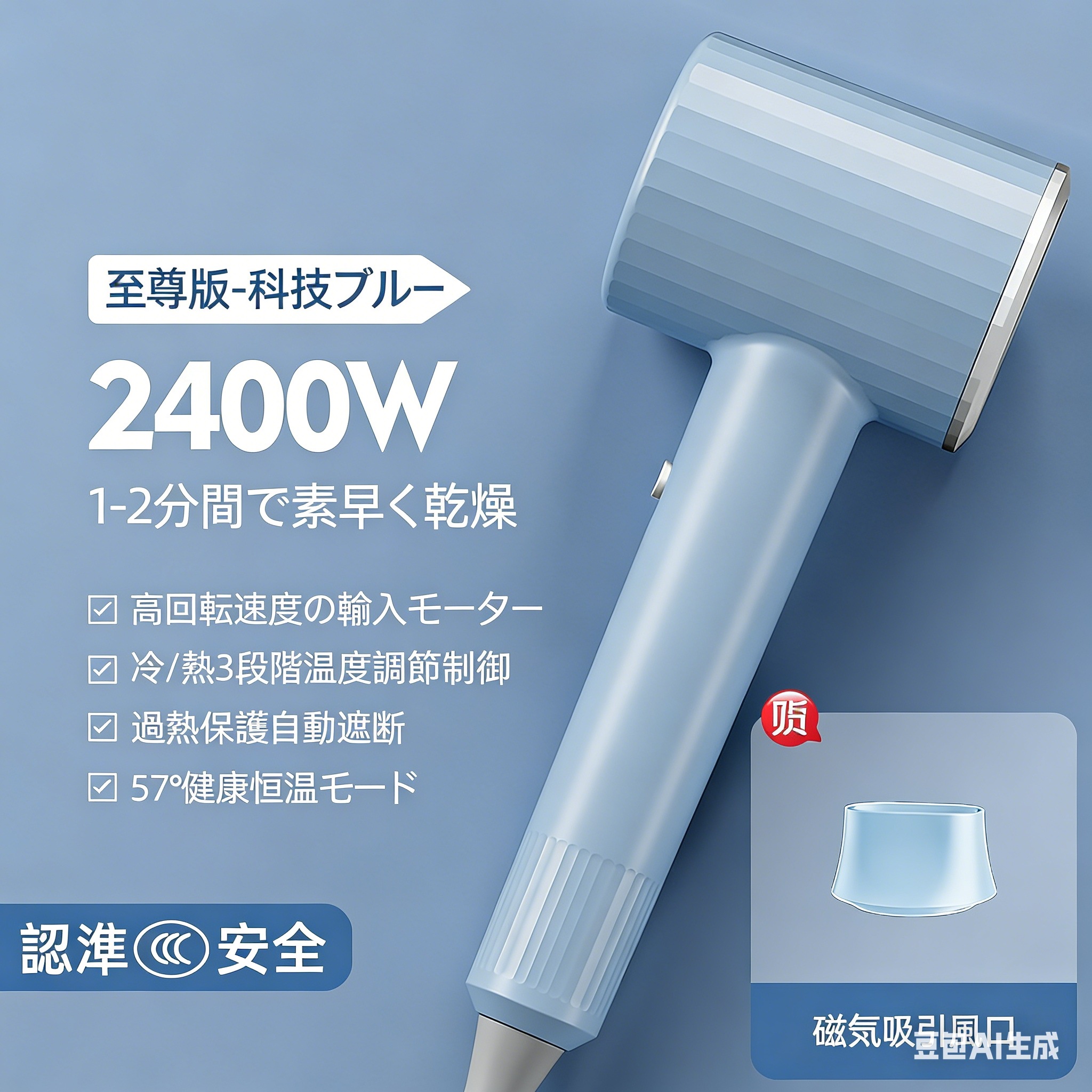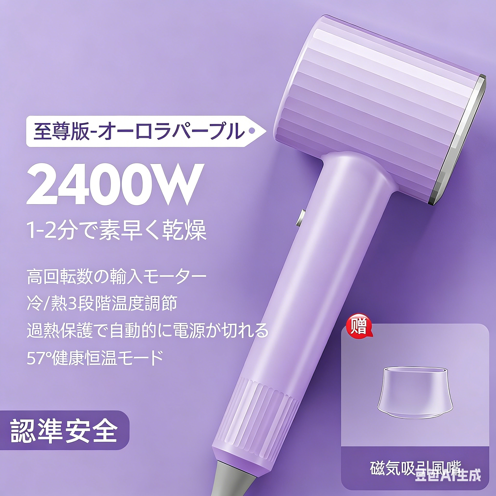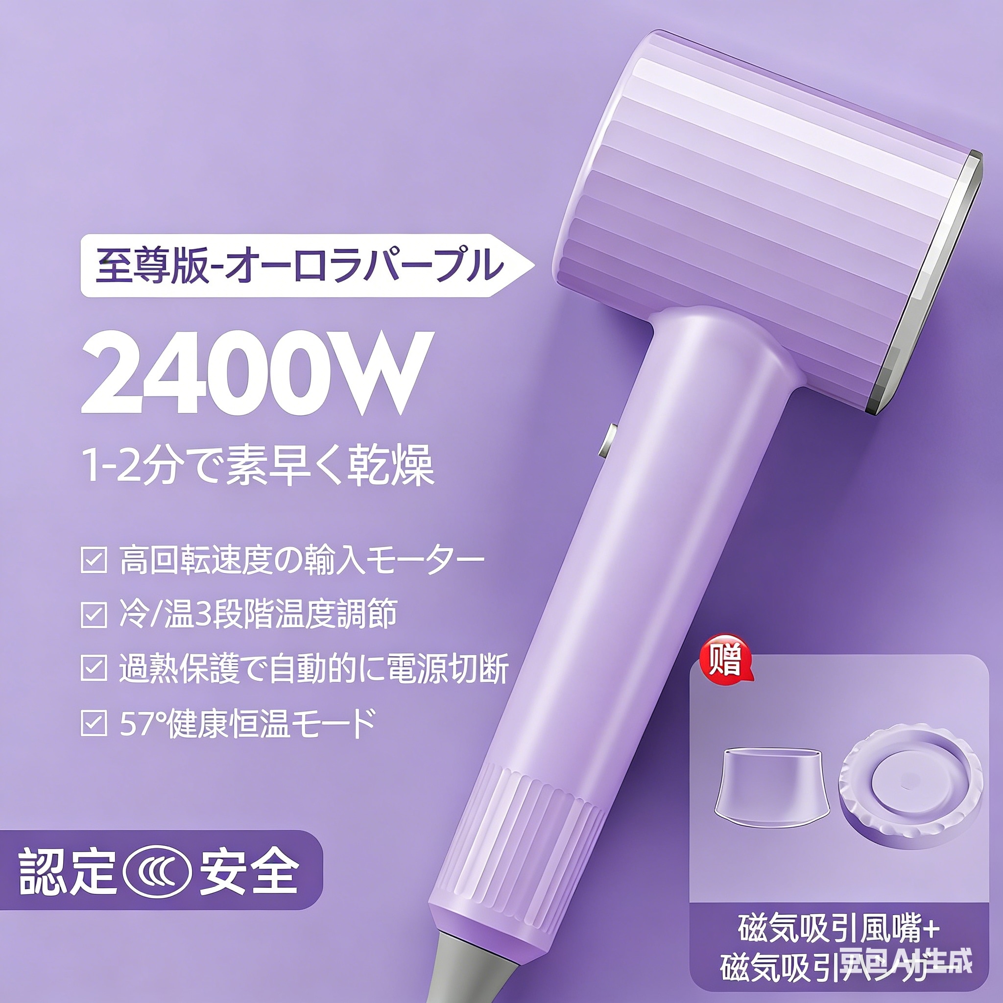 マイナスイオンヘアドライヤー - オーロラパープル大風力で速乾2000-2400W人気軽量高風量コンパクト型ヘアドライヤー
