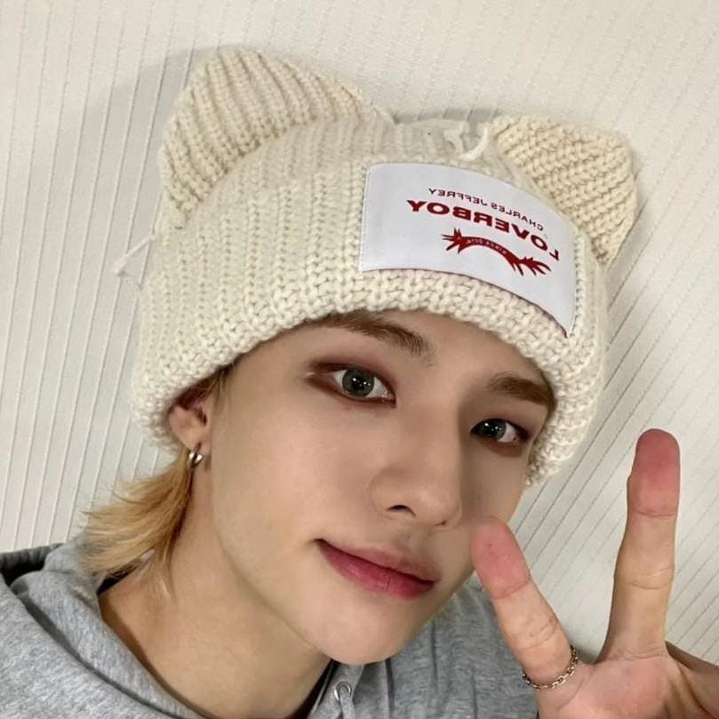 【Hyunjin 着用】かわいい子ブタの耳ニット毛糸帽ブタのミミニット帽