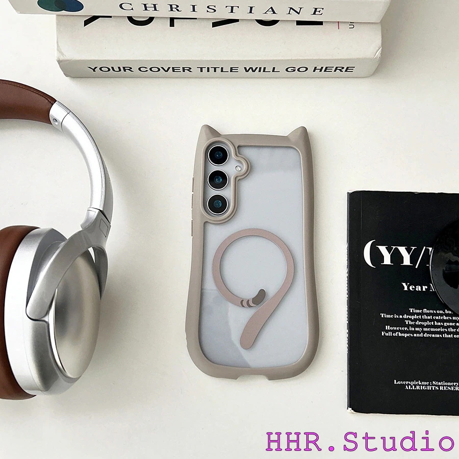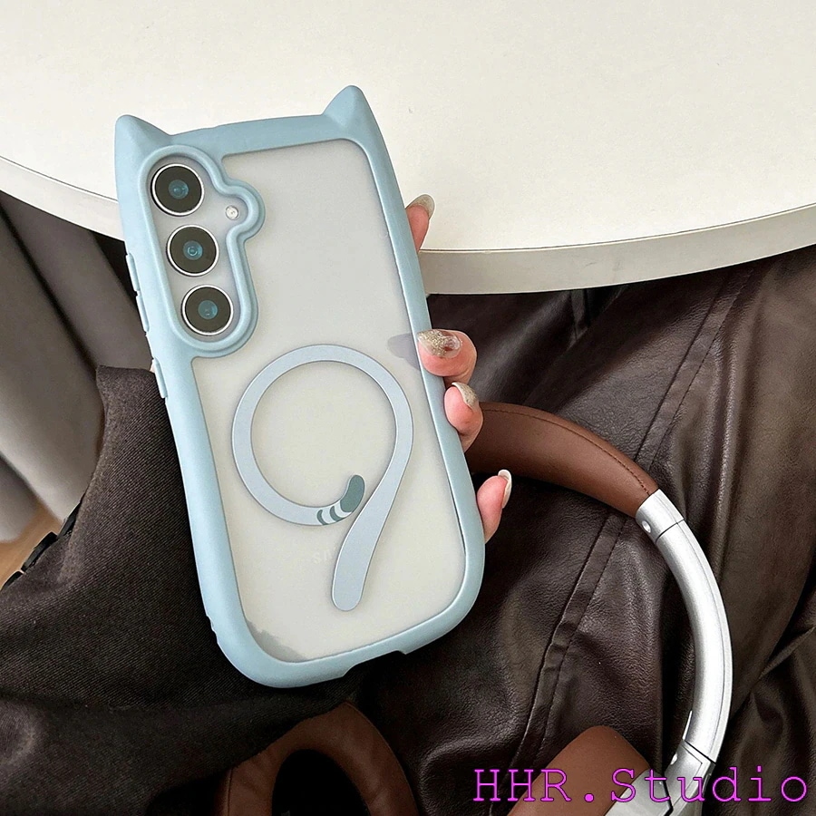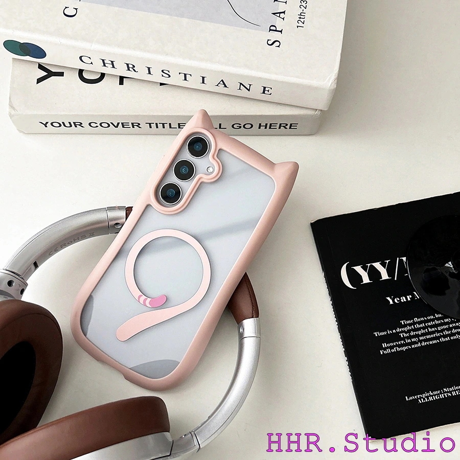 Galaxygalaxy s26 ultra ケース クリア MagSafe対応 猫耳付き クリア背面カバー Galaxy S25/S24/S23 Plus ケース 耐衝撃 保護フィルム対応 スマホケース