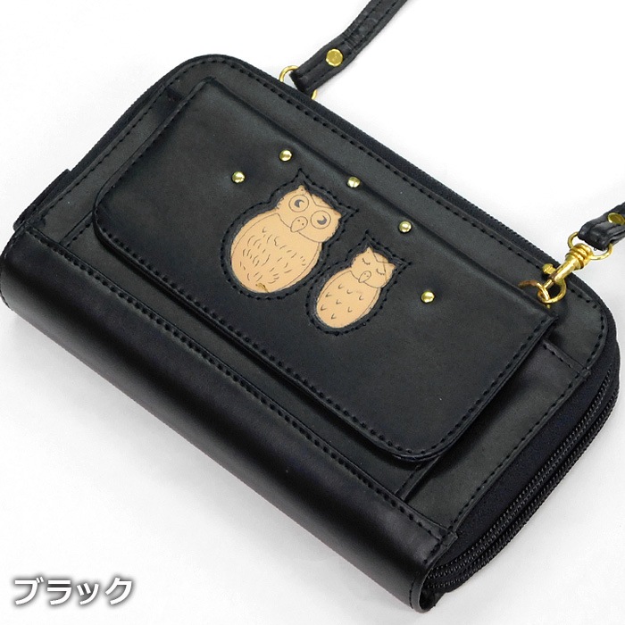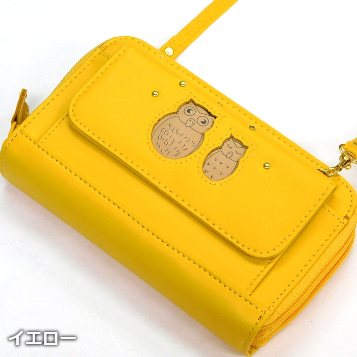 訳あり ふくろう 長財布 レディース メンズ 財布 お財布ショルダー ミニショルダー ウォレット ふくろう財布 斜め掛け 小銭入れ カード 使いやすい 縁起 幸運 金運アップ 縁起財布 梟 黒 黄色