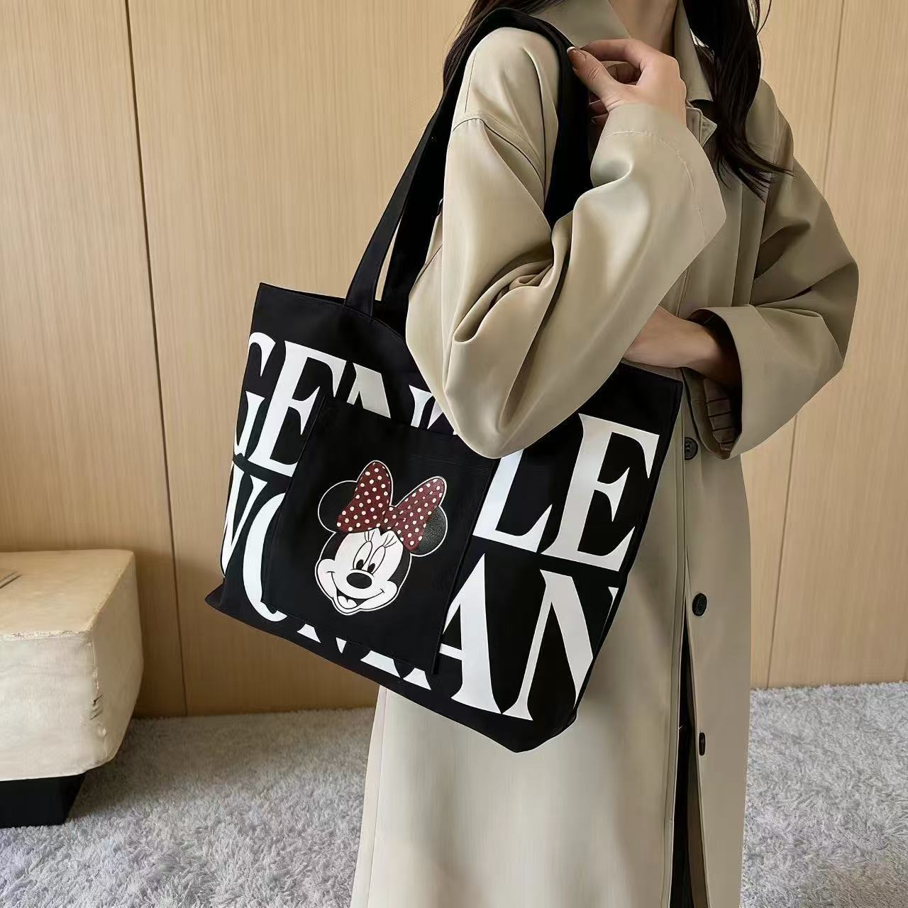 韓国ins ミッキーマウス トートバッグ ショルダーバッグ レディース キャンバスエコ/ ハンドバッグ /エコバッグ便利大容量 通勤通学推し 軽量