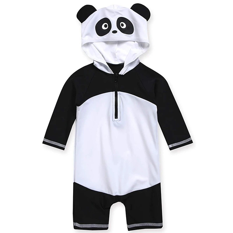 水着 女の子 男の子 キッズ 子供服 サメ柄 パンダサロペット 長袖 ロンパース 帽子付き オールインワンプール ビーチ 夏 海水浴 練習用 ベビー