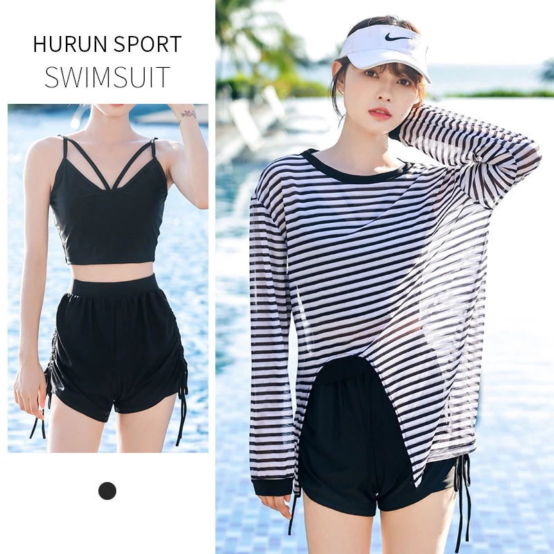 可愛い ゆったり水着 レディース 3点セット ビキニ UVカット体型カバー着痩せ 韓国ファッション Tシャツスポーツ スポーティー タンキニ ラッシュガード ワンピース 大きいサイ