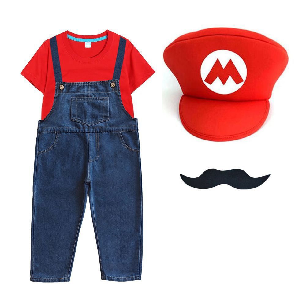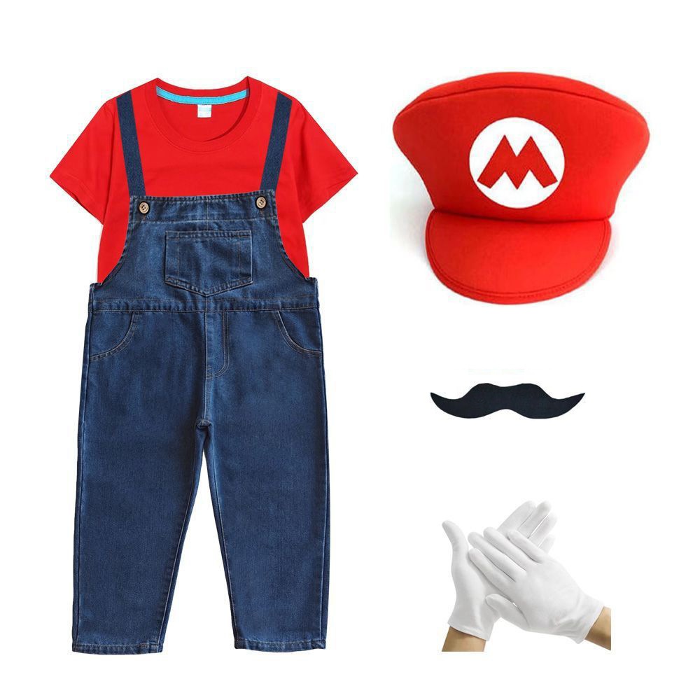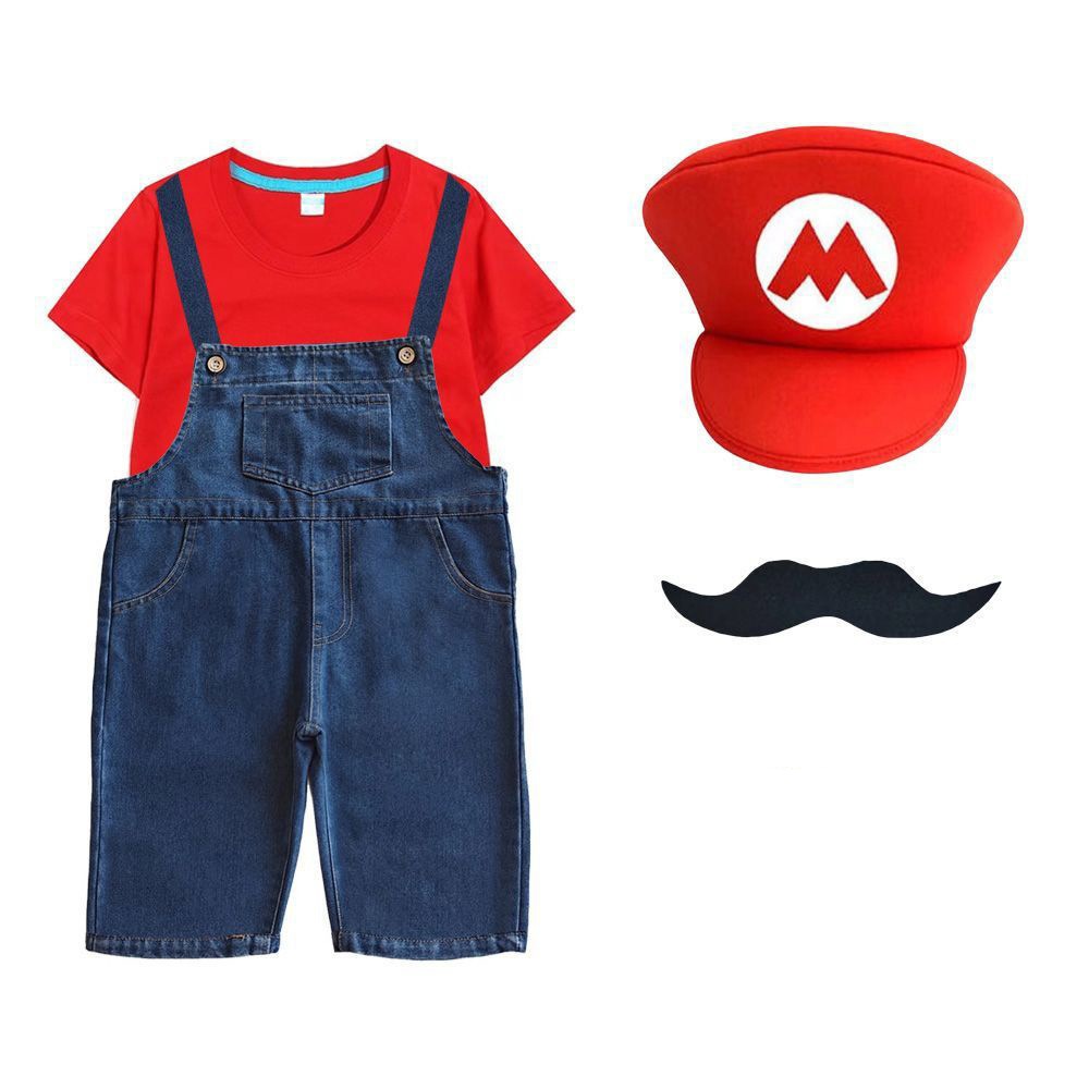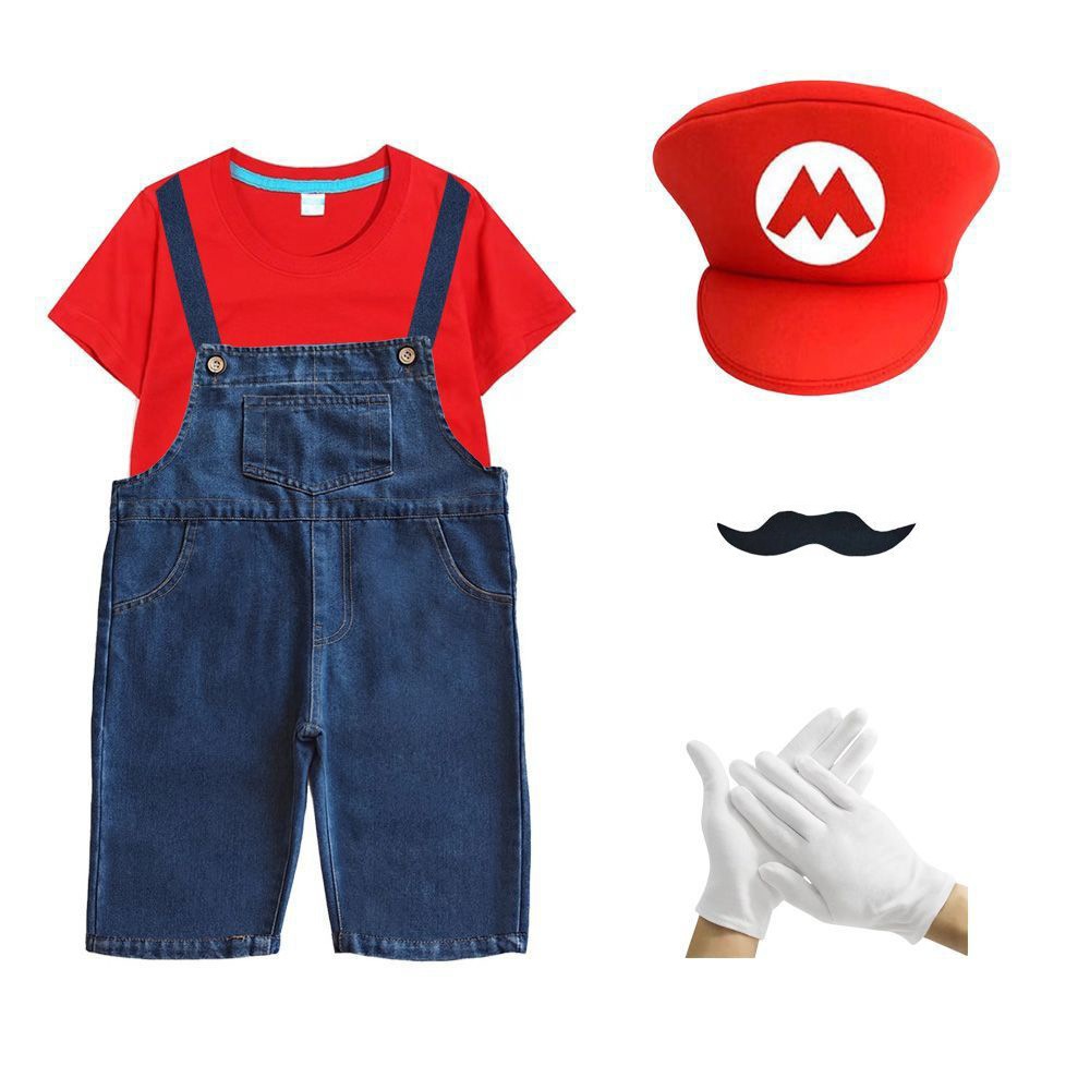 2026新品入荷 マリオcosスーパーメアリー服装六一ショー夏綿短tカウボーイバックパンツ運動会班服セット演出服 舞台服 トップス ハロウィンコスプレ 子供服 大人兼用