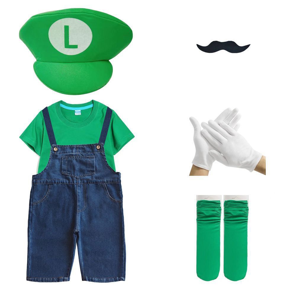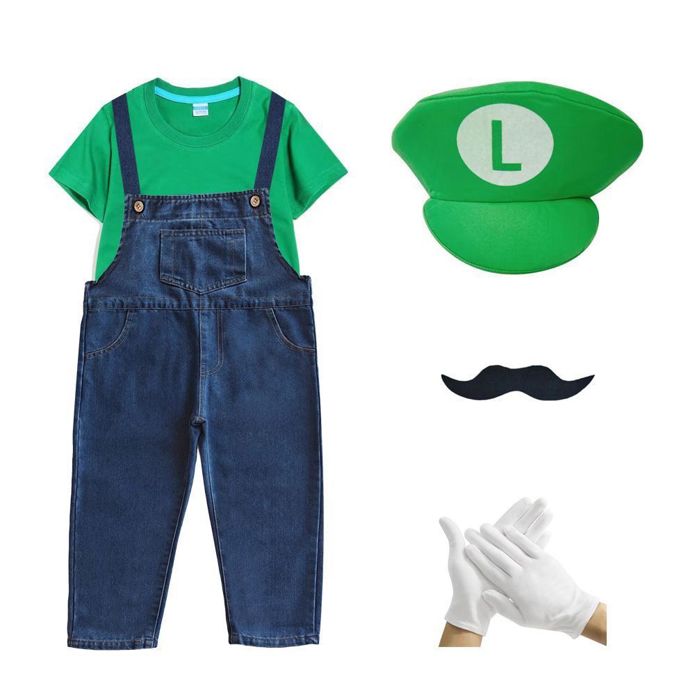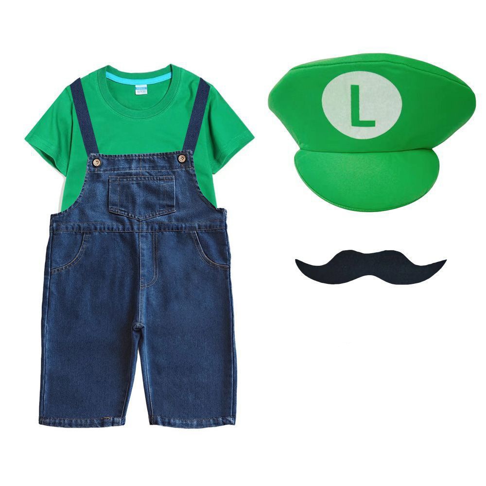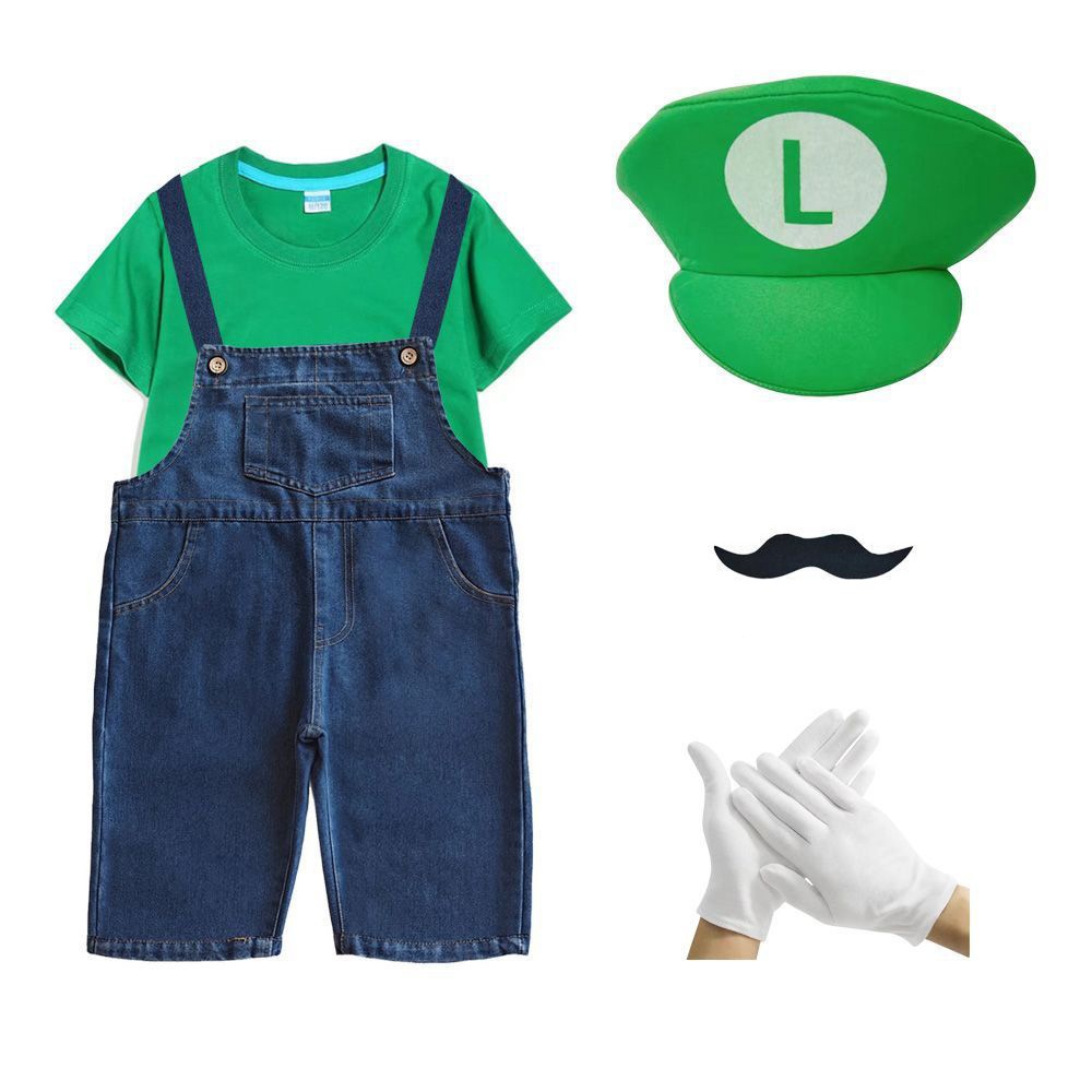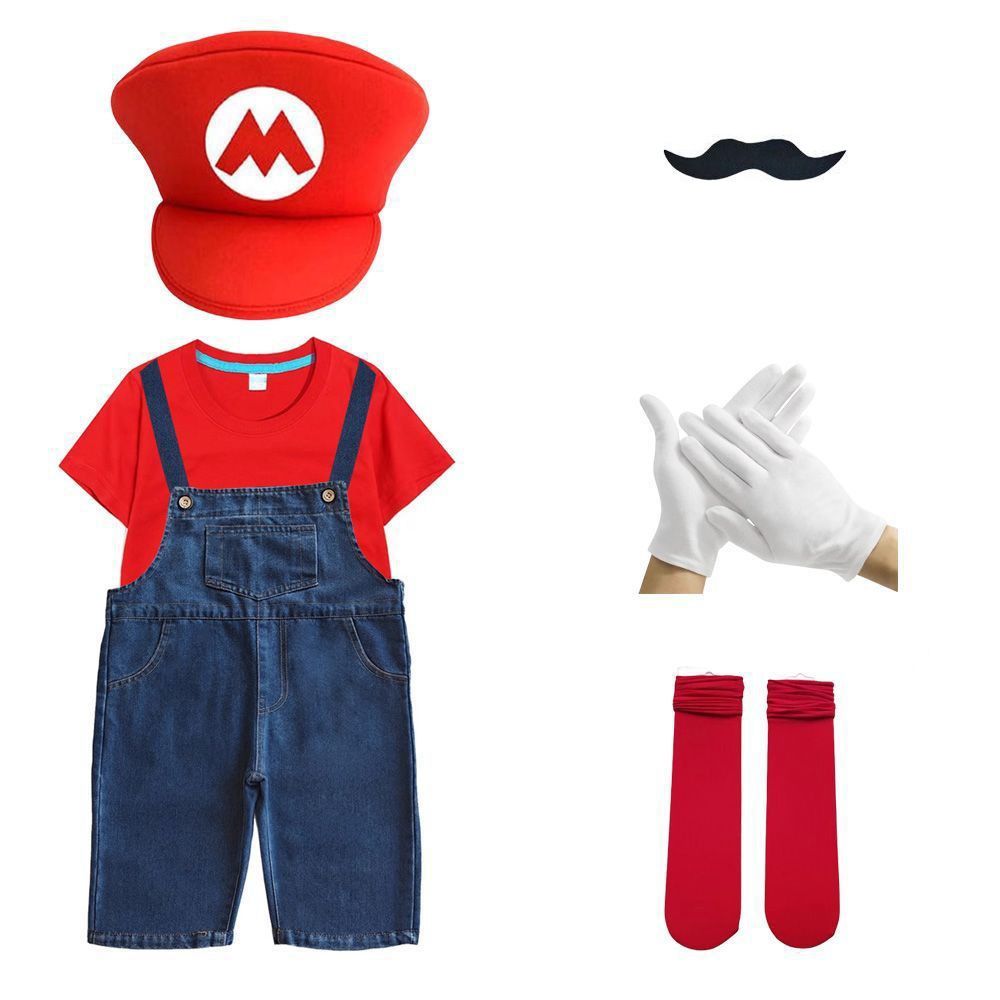 2026新品入荷 マリオcosスーパーメアリー服装六一ショー夏綿短tカウボーイバックパンツ運動会班服セット演出服 舞台服 トップス ハロウィンコスプレ 子供服 大人兼用