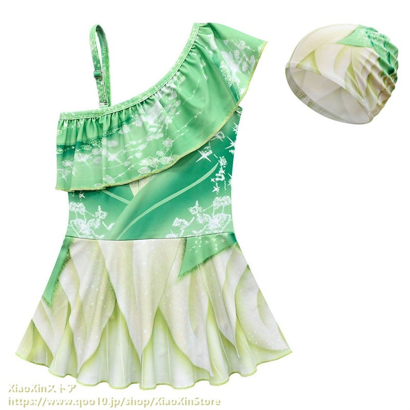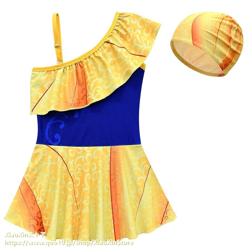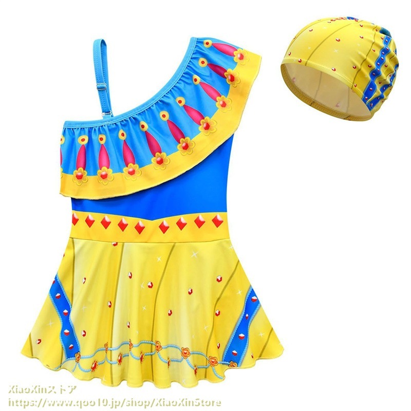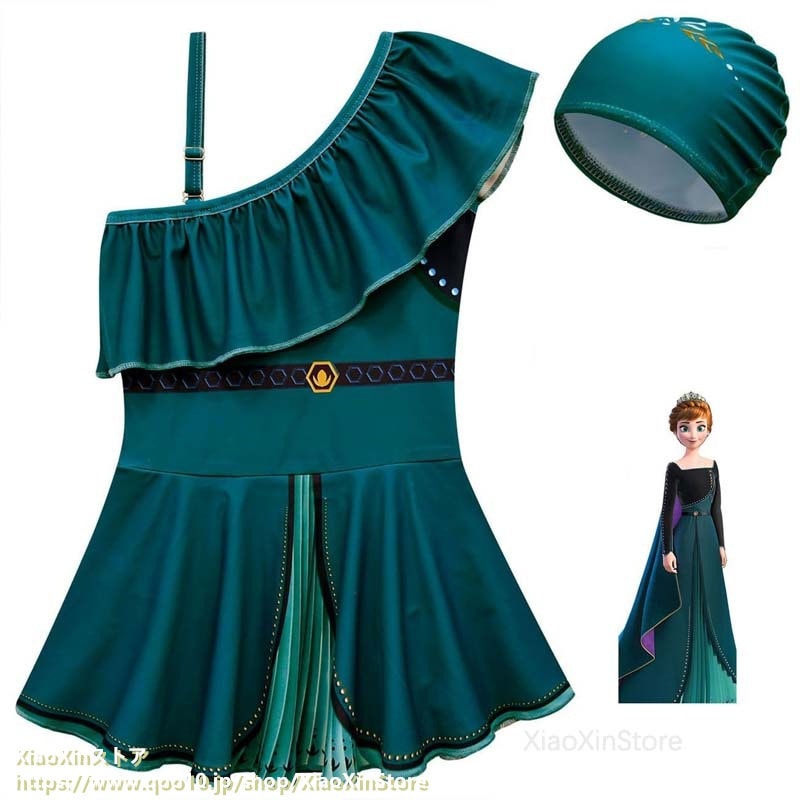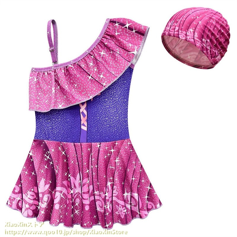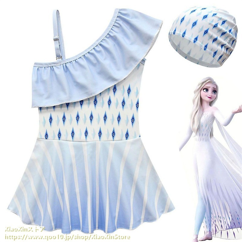 2026新作 ディズニー 子供用水着 アナと雪の女王 プリンセス水着ナ プリンセス 女の子 斜め肩 ワンピース水着 水泳帽 水着 水着