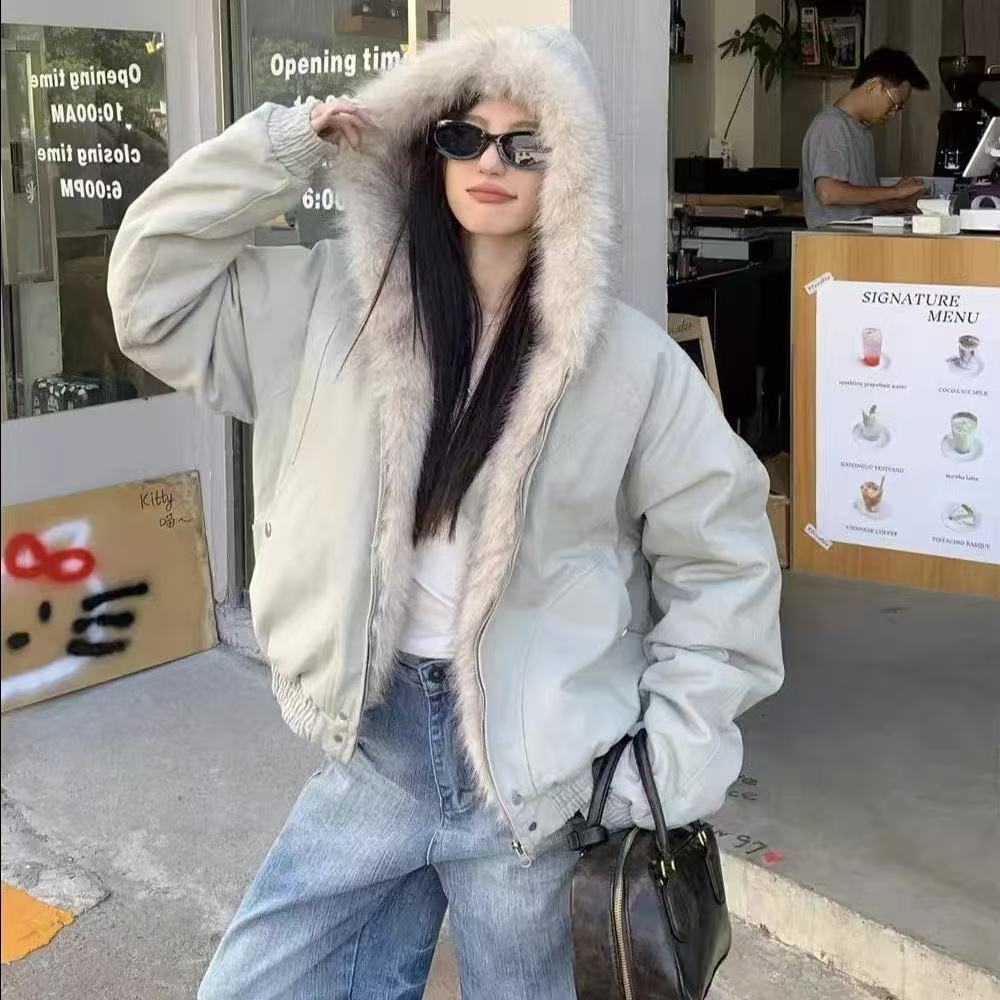カモ ファー キルティング ダウン フード ダウン キルティングダウン オーバーフィット ルーズ y2k デイリー 冬 アウター ファージャケ