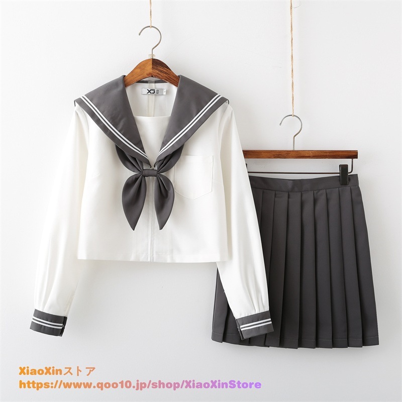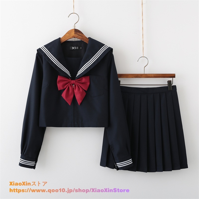 大人気 3Type 制服 セーラー服 正統派 3点セット コスプレ プリーツスカートミニスカート チェック スカート 学生服 長袖 半袖 リボン 大きいサイズ ミニ 女子学生服 韓国制服 文化祭