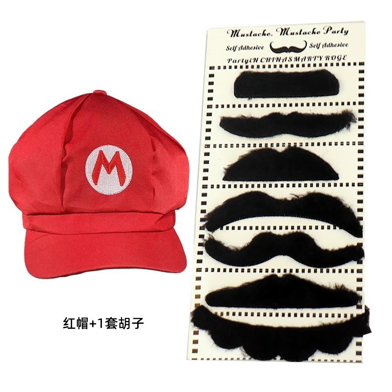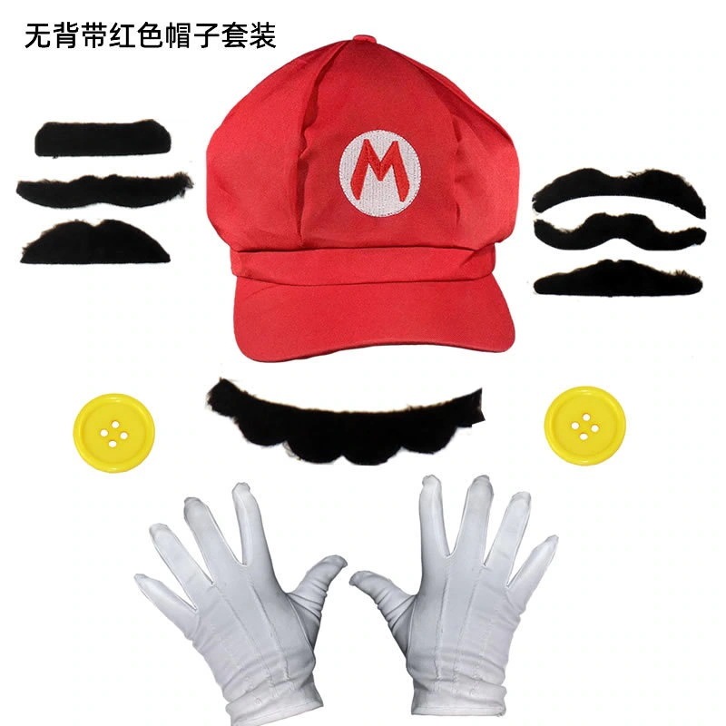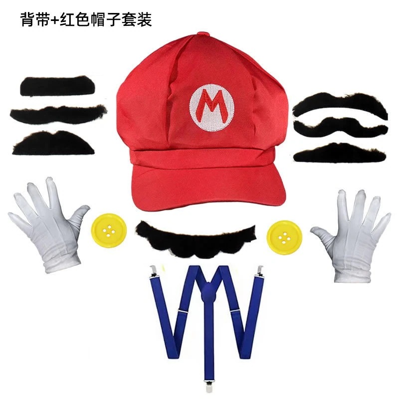 通学 スーパーマリオ メアリーマリオアニメゲームキャラクター大人用八角形日よけ帽子野球帽手袋ひげストラップセット 保育園 小学部 帽子ハロウィンコスプレ