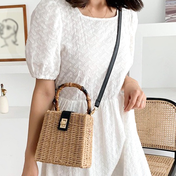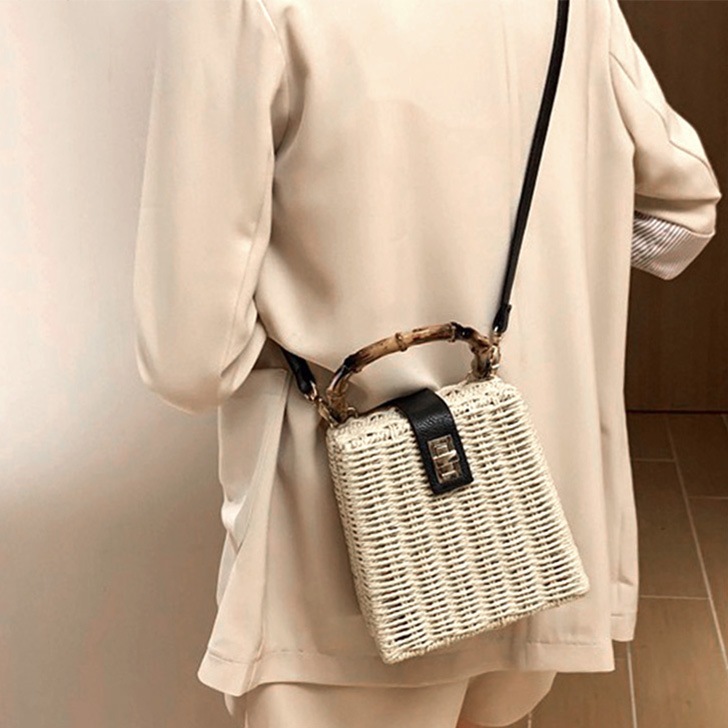 リアル スタイル2way ラタン風 スクエア ペーパー かごバッグ レディース ショルダーバッグ ポシェット カゴバッグ ハンドバッグ 蓋付き 肩掛け 斜めがけ 雑材 縦型 小さめ 軽量 おしゃれ かわいい シンプル