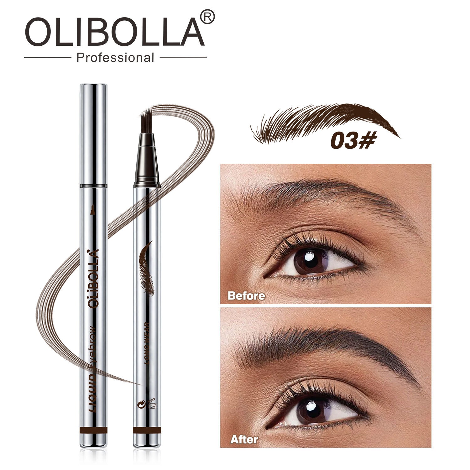 OLIBOLLAナチュラル眉毛 リキッドアイブロウ ウォータープルーフ 汗に強い 長時間持続 多色展開 ウォーターアイブロウ コスメ
