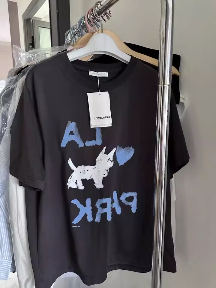 韓国low classic IU同タイプの乱暴な子犬tシャツ女性夏韓系ゆるいカジュアル半袖男女tシャツ
