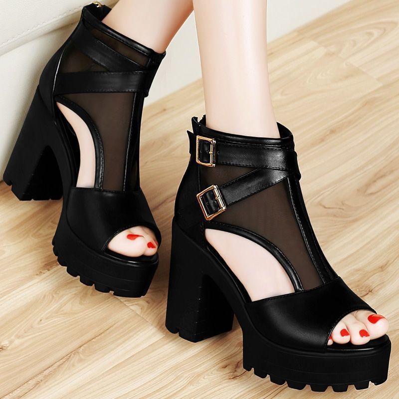 サンダル レディースネックストラップ後ファスナー中ヒールサンダル女性太ヒール防水台ネックストラップ厚底 韓国ファッション 母 の 日 プレゼント