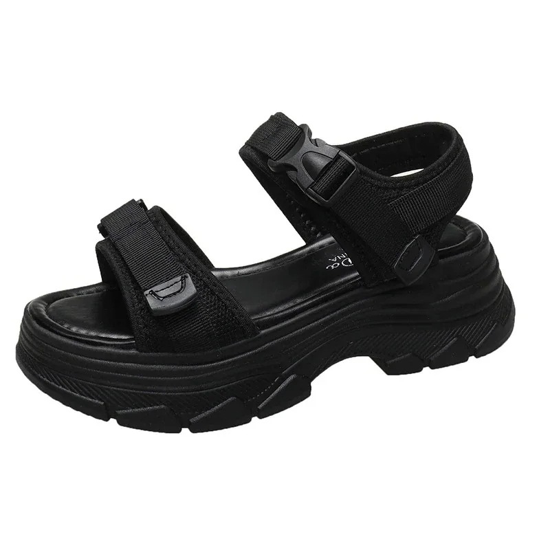 サンダル 厚底美脚スポーツ風の厚い底のサンダルの女性あつぞこサンダルのの露指のローマの靴の24新型のビスケットの底のマジックはビーチの靴の女性を貼ります